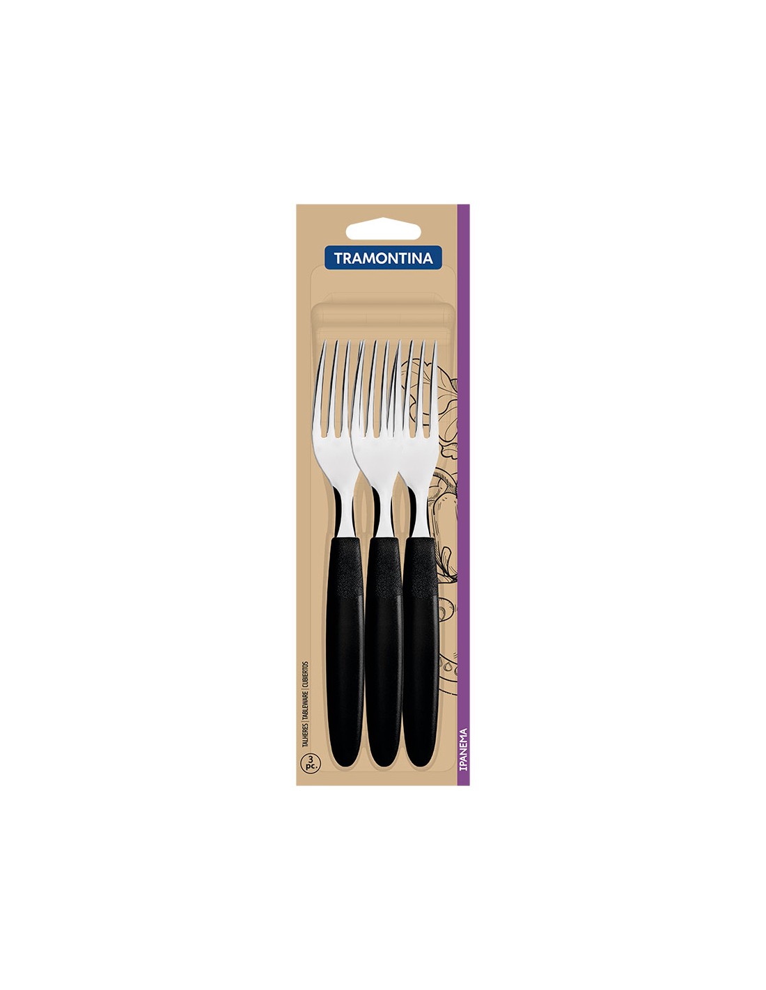 Tenedor de mesa ipanema negro 19,1 cm en acero inoxidable, mangos de polipropileno, incluye 3 piezas, color negro