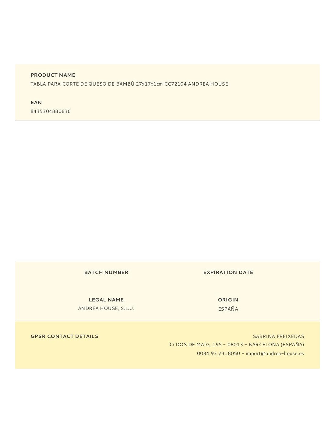 Tabla para corte de queso de bambú 27x17x1cm (ancho/fondo/alto) cc72104 andrea house. tabla de bambú para cortar queso