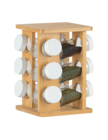 Especiero giratorio para cocina de bambú 21,5 x 15 x 23,5 cm
