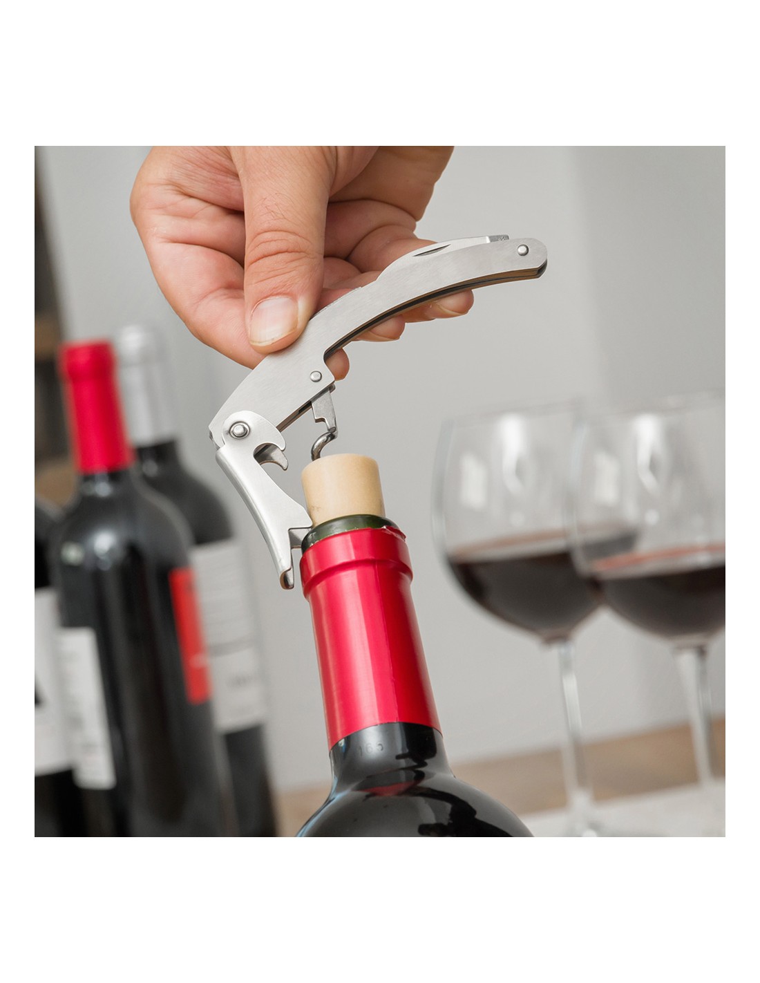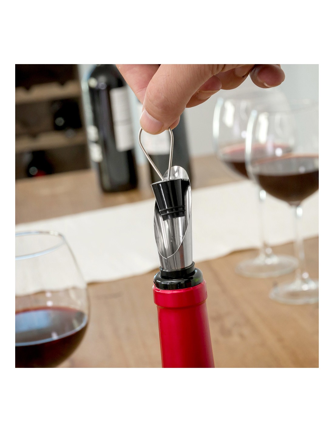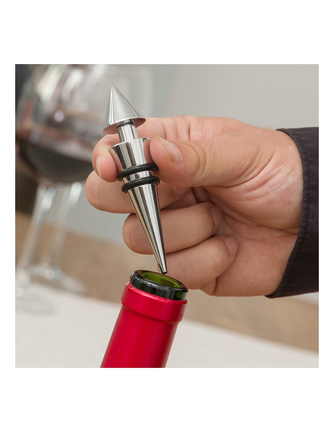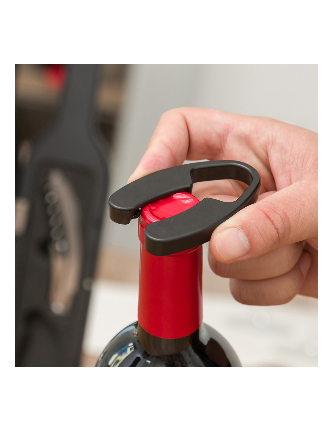 Estuche de vino con forma de botella accesorios de vino en diseño innovador set de accesorios para vino en forma de botella con medidas aproximadas de ø7 x 33 cm. incluye dosificador, sacacorchos, anillo antigoteo, cortador y tapón. diseño elegante en abs, acero inoxidable y aleación de zinc. ideal como regalo y funcional para almacenar.