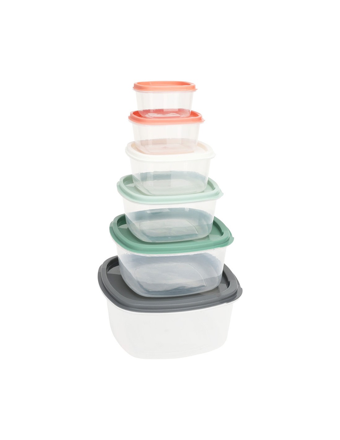 Set de 6 fiambreras de plastico con tapas de colores y medidas diferentes