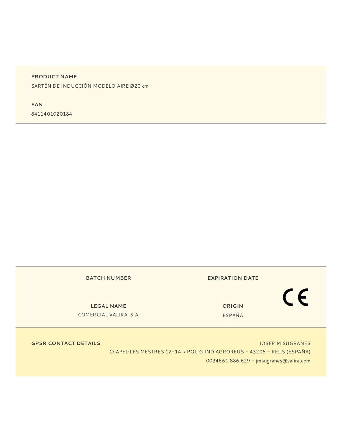 Sartén de inducción ø20cm aire 4641/25 valira. sartén antiadherente de aluminio fundido: fabricada en reus (españa). aluminio fundido indeformable y duradero, 100% reciclado. fabricada con energía eléctrica 100% renovable. apta para todas las fuentes de calor, incluido inducción y horno. revestimiento antiadherente libre de pfoa y resistente hasta 260°c. mango de acero inoxidable estilizado y ergonómico de tacto frío. fondo grueso que difunde el calor de forma muy rápida y uniforme. diseñada para máxima apilabilidad. peso optimizado para un manejo fácil y cómodo.