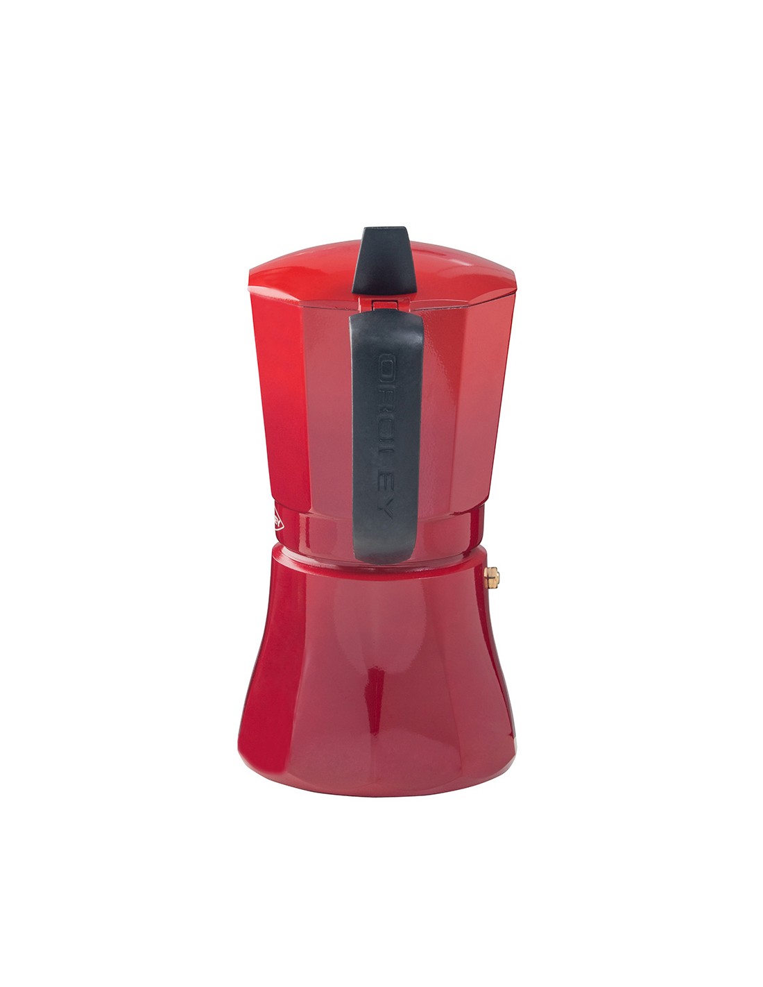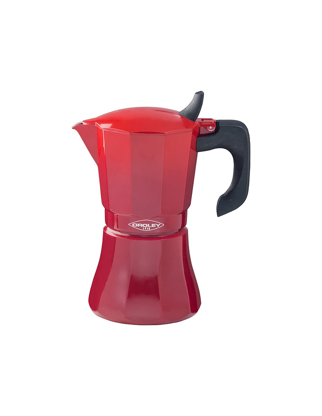 Cafetera de aluminio de 9 tazas modelo "petra" color rojo apta para inducción, gas, vitro y eléctrica mango de baquelita negra tacto soft-touch certificación de la válvula de seguridad