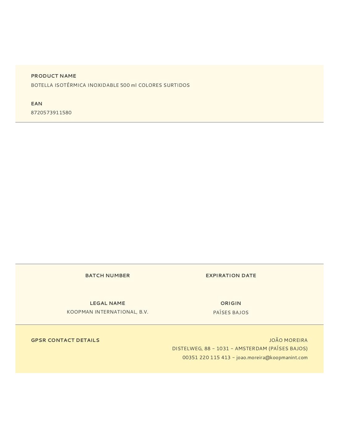 Botella isotérmica inoxidable colores surtidos 500 ml