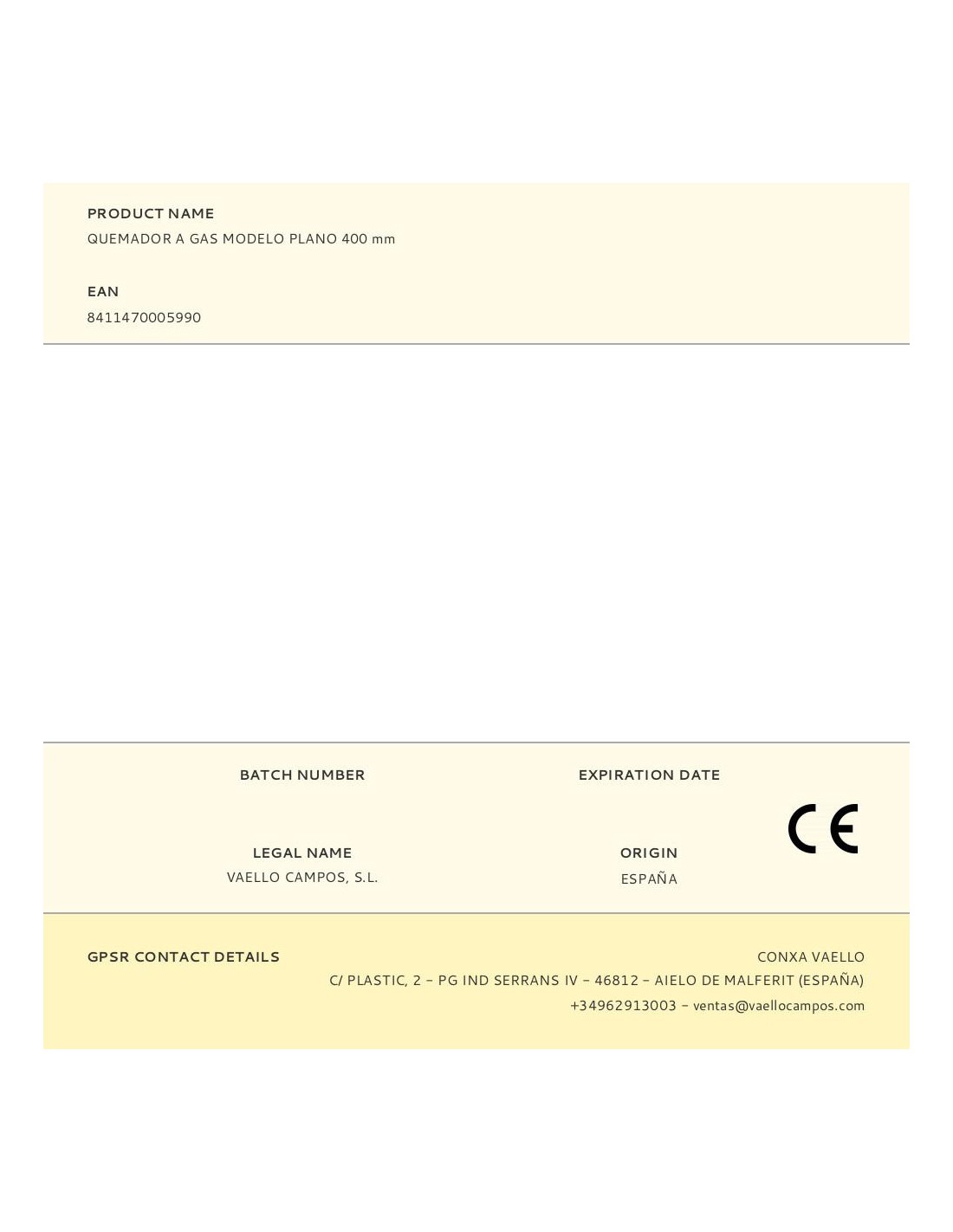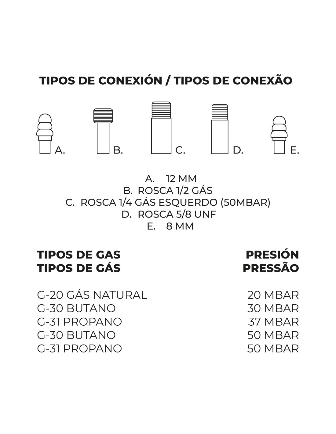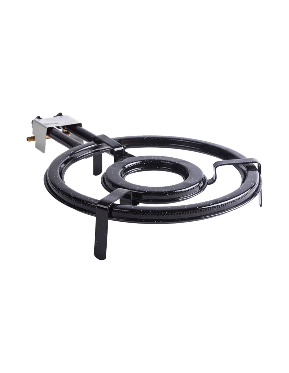 Quemador a gas modelo plano ø40cm. 2 fuegos homologado según la normativa de gas vigente. únicamente apto para uso en exterior. la salida del gas es lateral y se puede bajar el fuego al mínimo sin que se apague, es decir, tiene punto de seguridad.para butano, propano y gas natural certificado según directiva de los aparatos de gas.