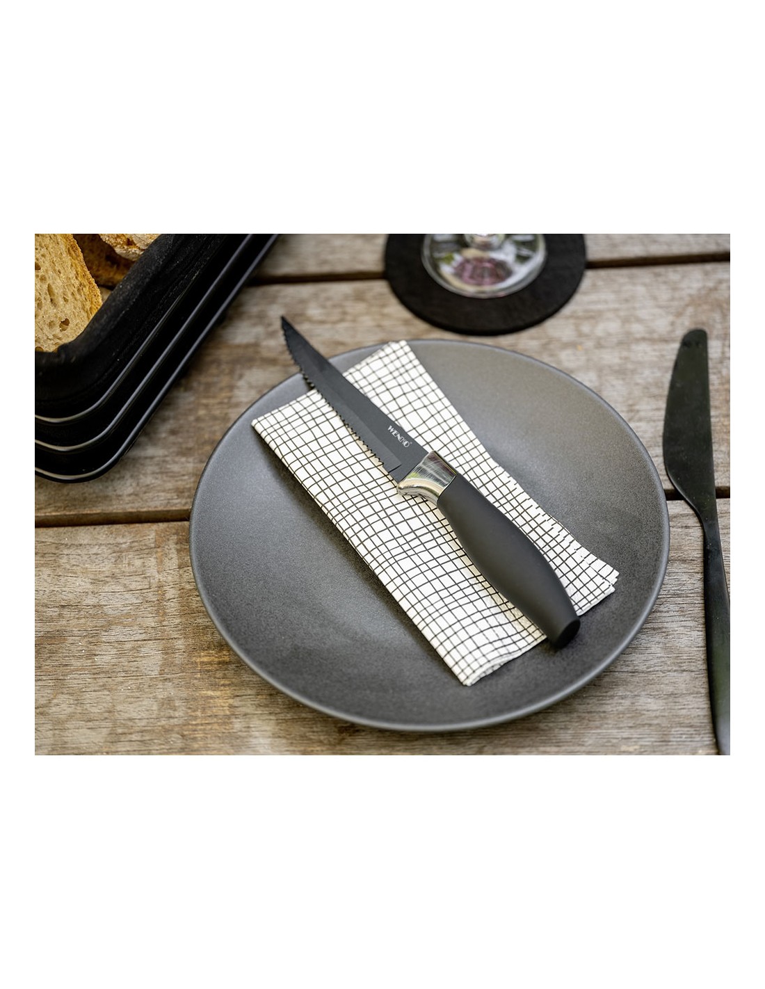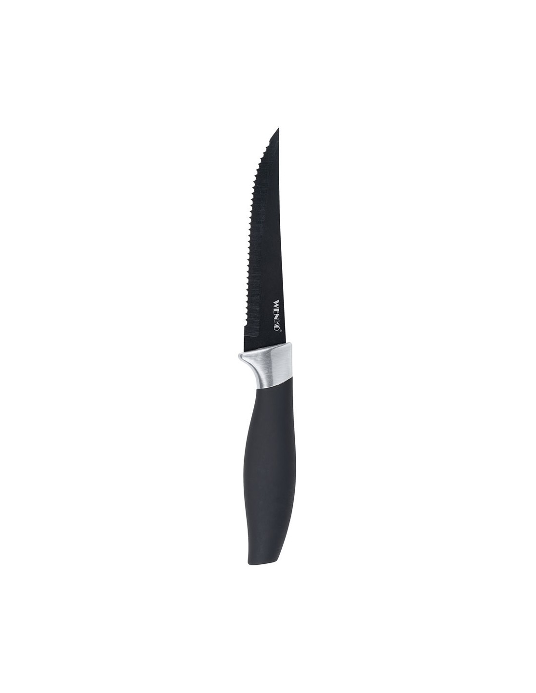 Cuchillo para carne con hoja dentada que permite cortar sin esfuerzo carne, pizza y otros alimentos a la parrilla. hoja muy afilada y mango ergonómico