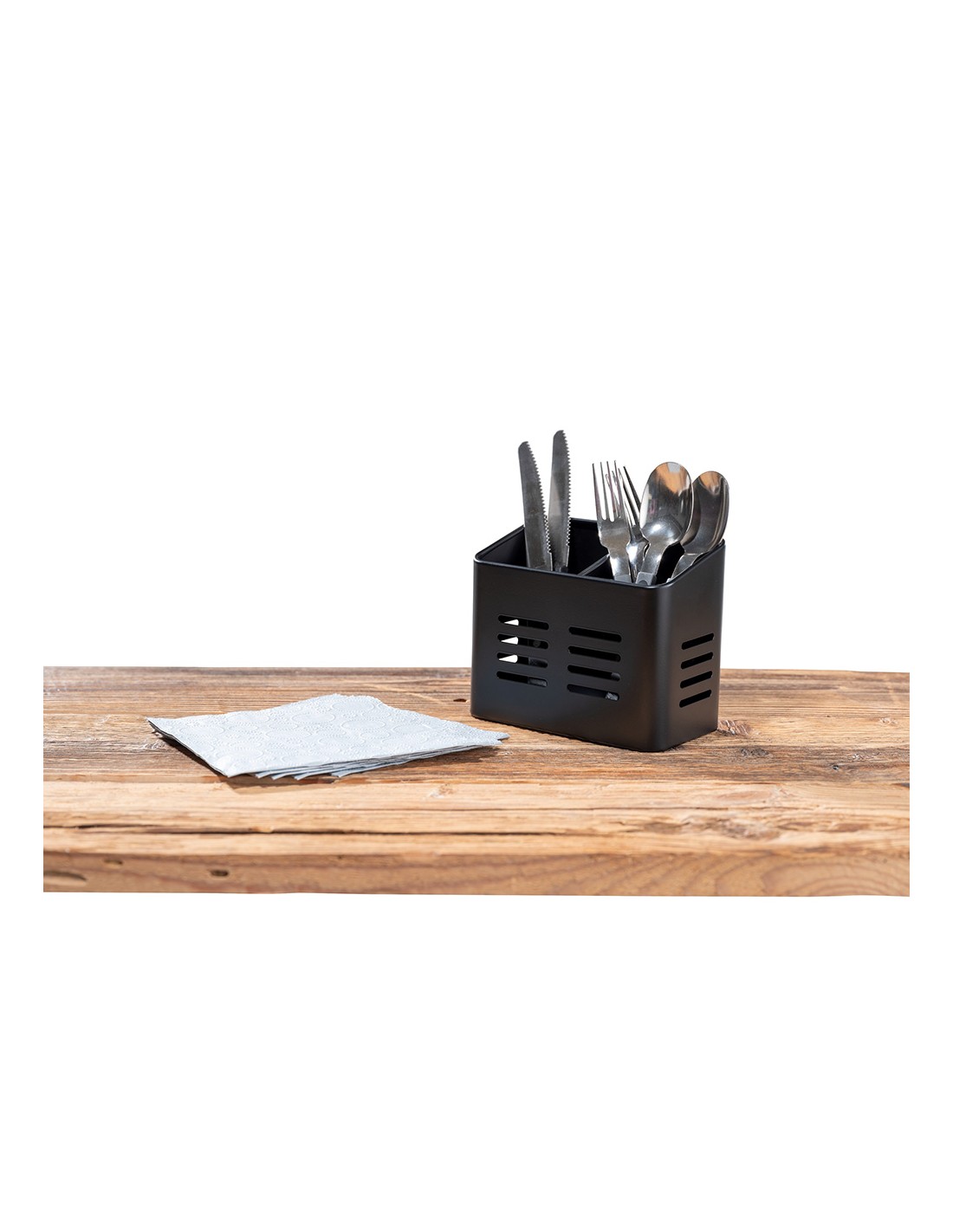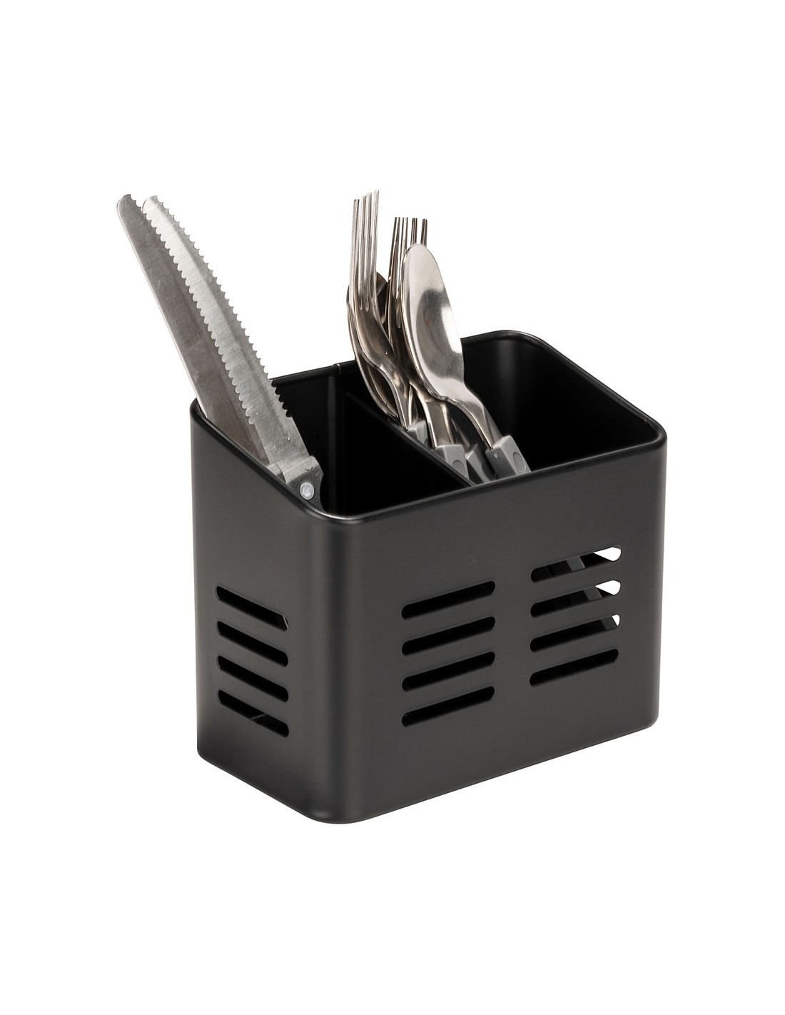 Cesta para cubiertos en un atractivo diseño negro mate. también se puede utilizar como escurridor de cubiertos junto al fregadero gracias a los orificios de la base