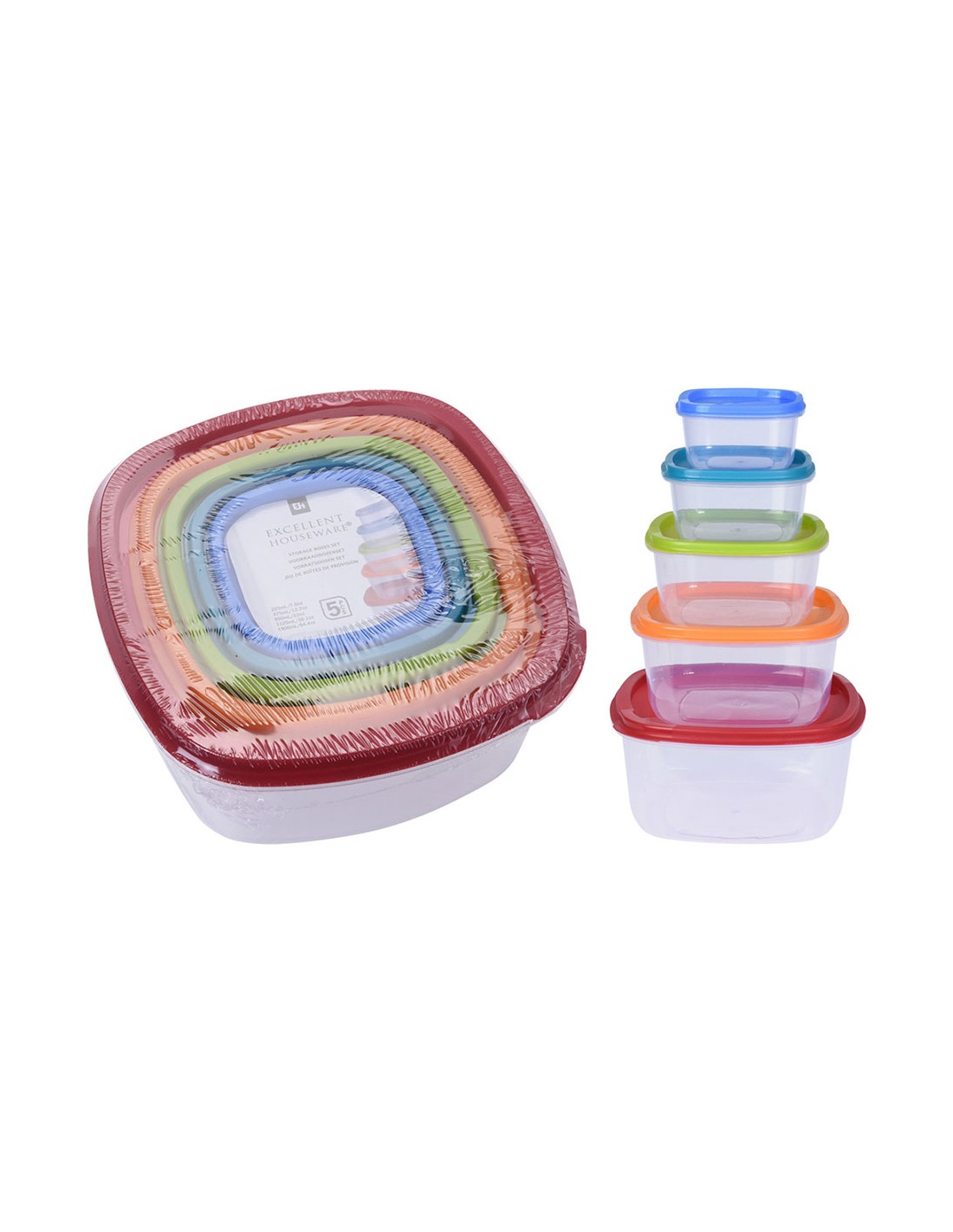 Set 5 fiambreras de plástico, tapas de colores, capacidad: 225, 375, 650, 1125 y 1900 ml, apto para congelador, lavavajillas y microondas max 5 min a 85w/120°c, no apto para horno