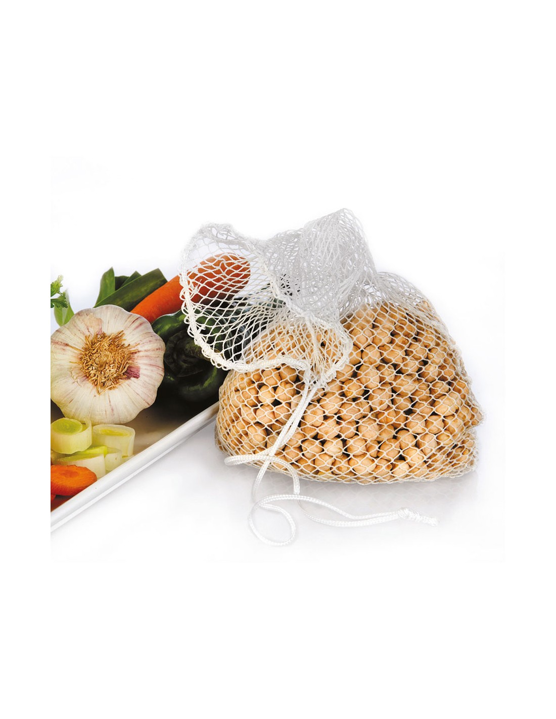 Malla para legumbres fabricada de nylon, capacidad 2 kg, medida 37 x 20 cm
