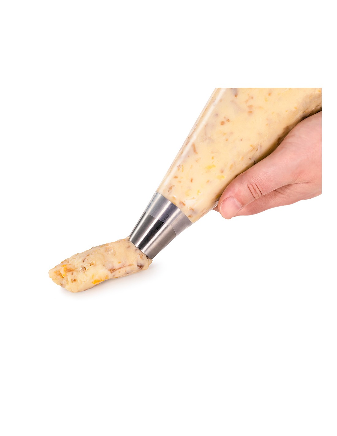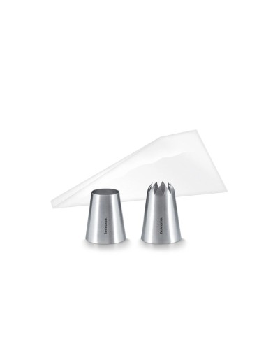 Kit croquetas grandchef, 10 bolsas, 2 boquillas. excelente para preparar croquetas y merengues, adecuado también para decorar y rellenar alimentos. las boquillas de acero inoxidable de alta calidad son aptas para lavavajillas, las bolsas están fabricadas de plástico resistente. utilizar bolsa pastelera delícia 50 cm, 10 pzs (código 630469) como repuesto de bolsas. recetas para croquetas y merengues incluidas. garantía de 3 años