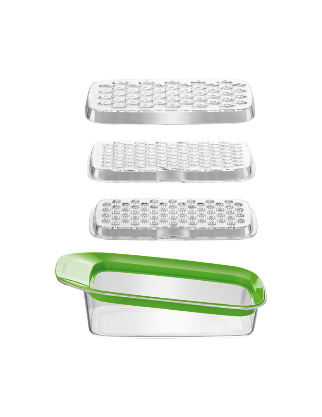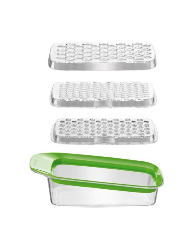 Rallador multifuncion vitamino. los ralladores con cuchillas de plástico son ideales para alimentos las verduras y frutas ralladas no pierden su color ni se oxidan, los alimentos conservan su sabor y aroma y permanecen frescos más tiempo. excelente para preparar comida sana y comida de bebé, con tres cuchillas de plástico diferentes. consumir la fruta y verduras ralladas lo antes posible para obtener lo mejor de su valor nutritivo. fabricado de excelente plástico resistente. apto para frigorífico y lavavajillas. garantía de 3 años. tescoma