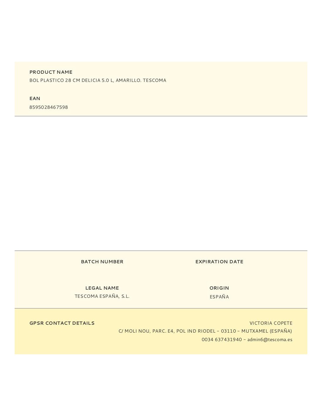 Bol plastico 28 cm delicia 5. 0 l, amarillo. fabricado de excelente plástico resistente. adecuado para microondas, apto para lavavajillas y frigorífico/nevera. garantía de 3 años