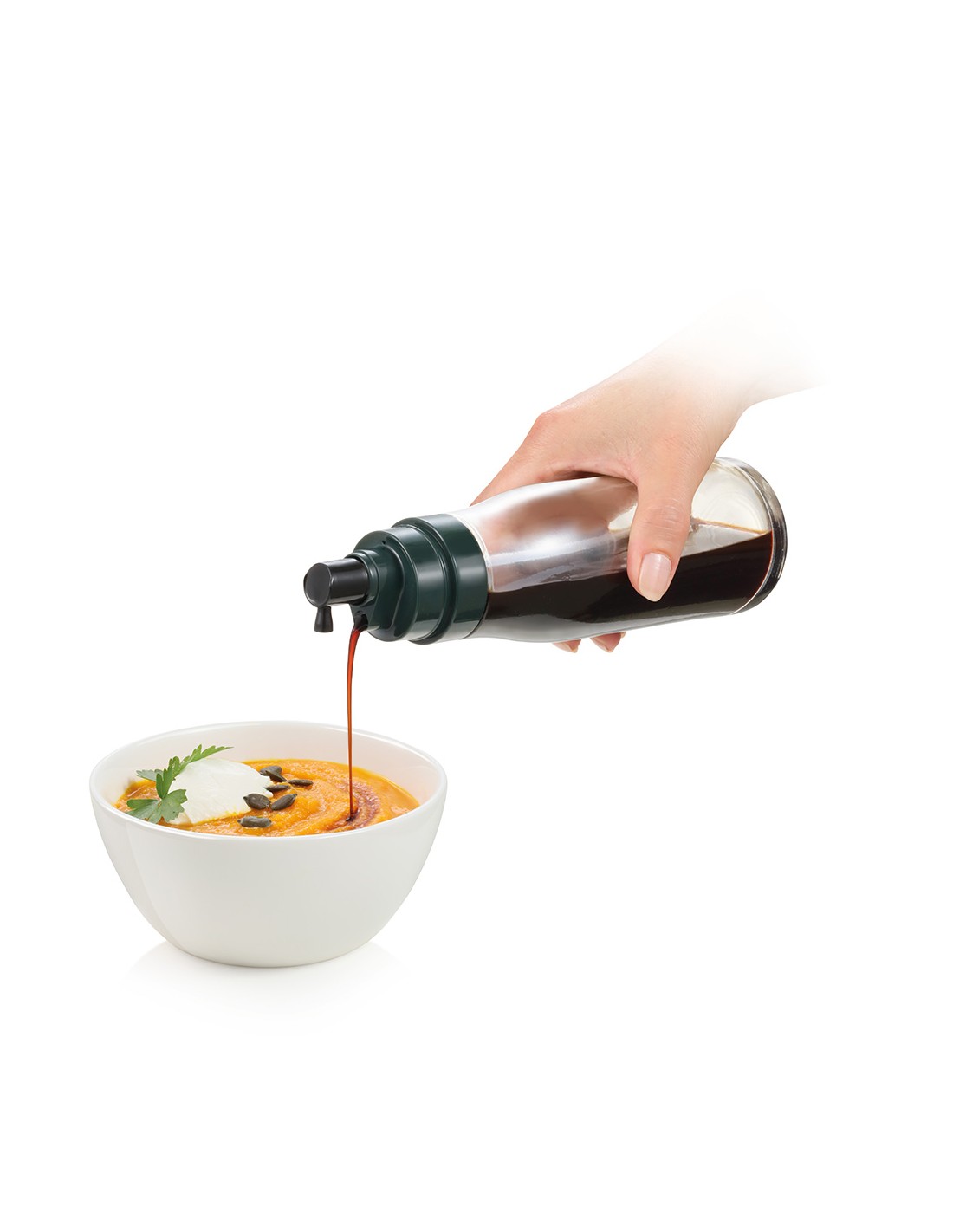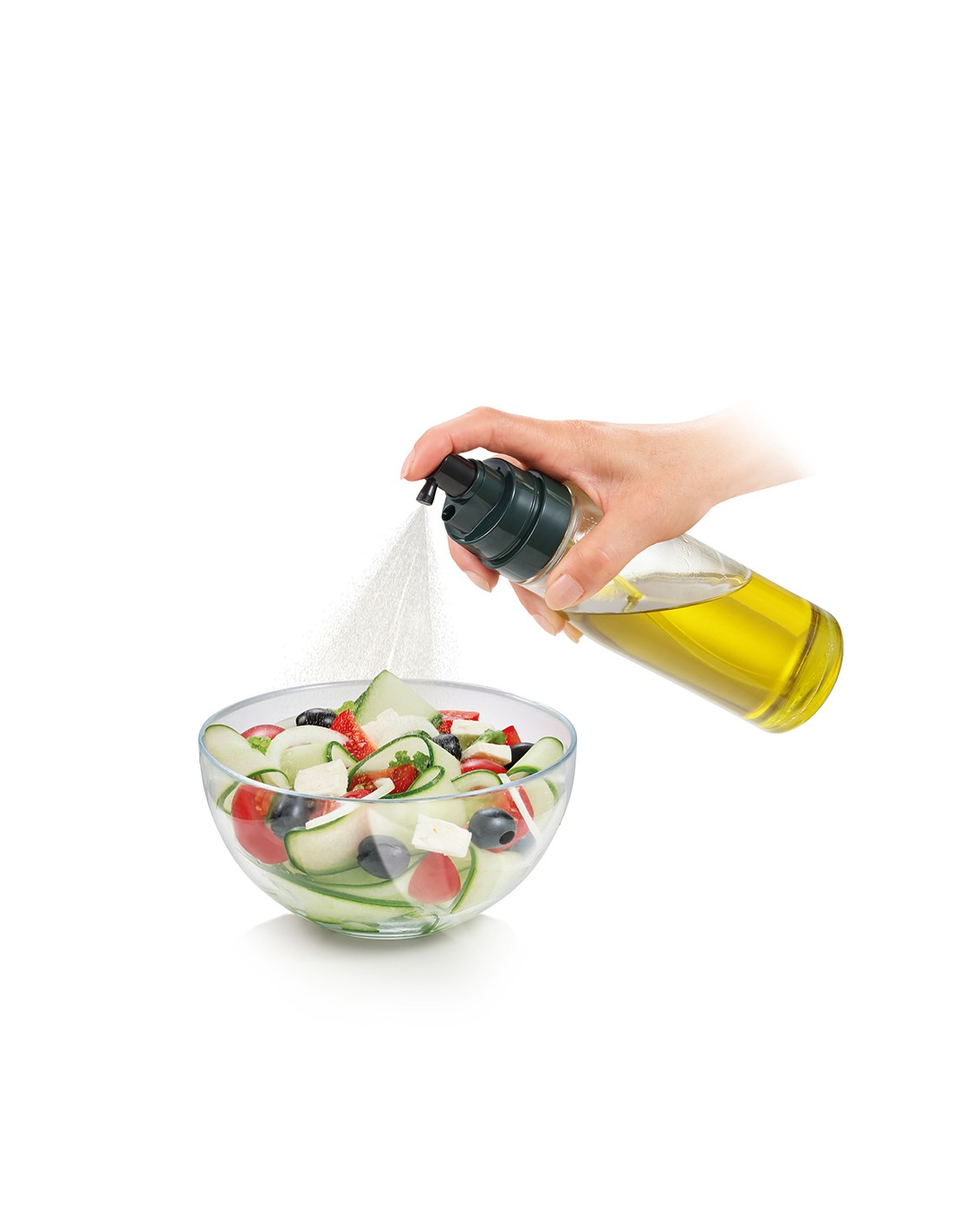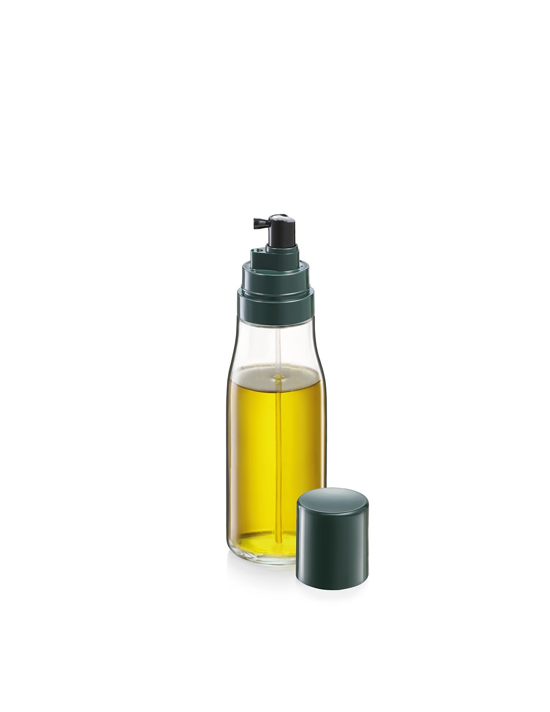 Pulverizador aceitera con vertedor 250 ml. excelente para condimentar alimentos con aceite o vinagre aplicándolos uniformemente y dosificándolos cuidadosamente mediante el pulverizador o el vertedor. vidrio grueso de alta calidad y plástico resistente. garantía de 3 años