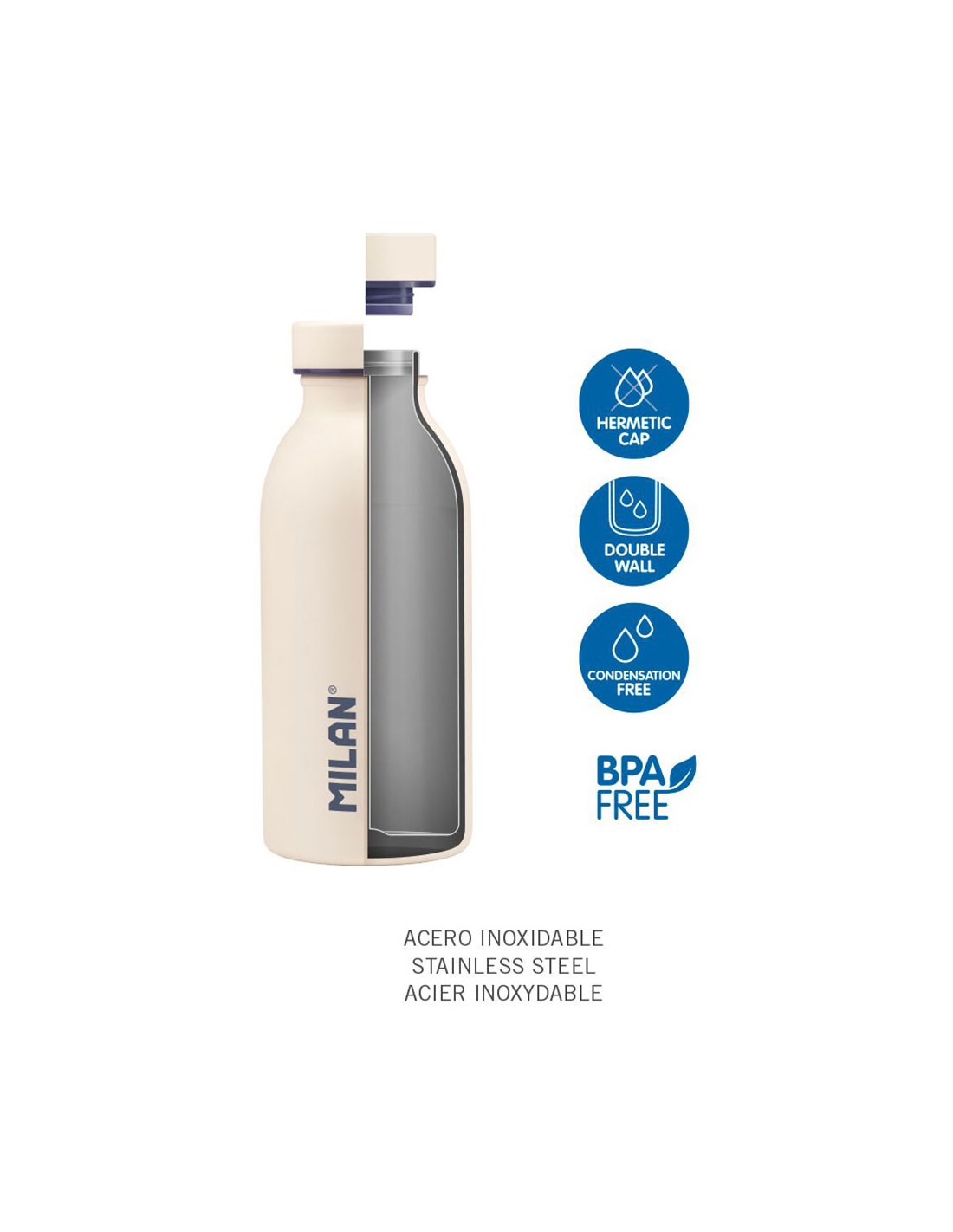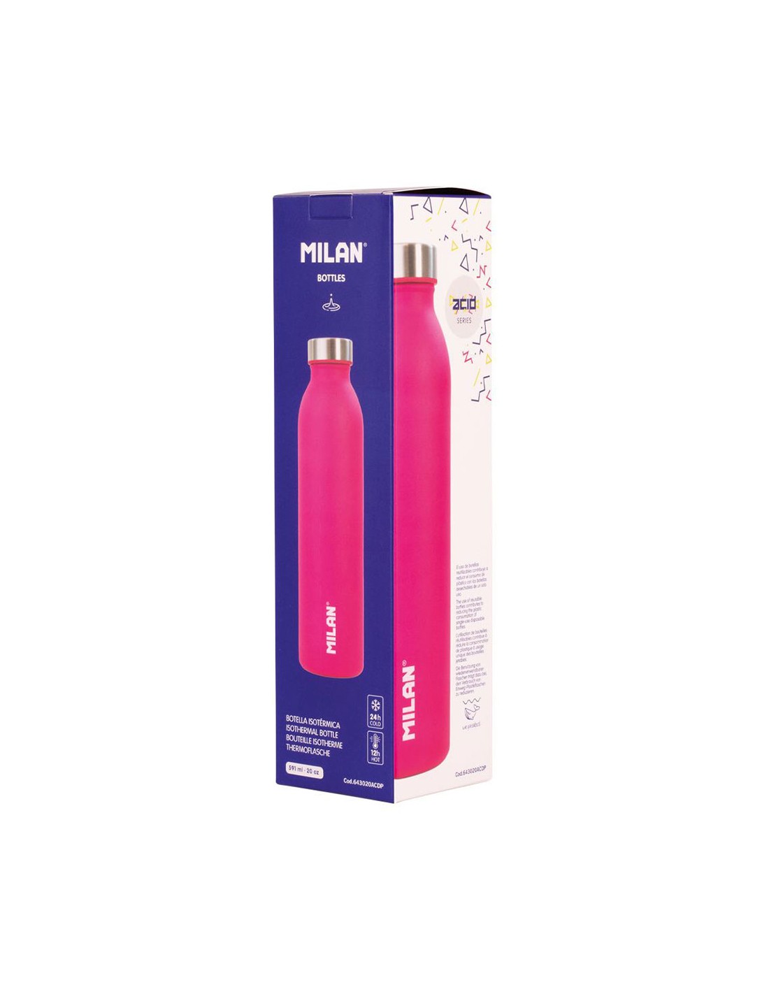 Botella isotérmica con doble pared de acero inoxidable. serie acid, color rosa. capacidad: 0,59l. aislamiento al vacío que evita la condensación y permite que la parte exterior mantenga la temperatura ambiente. mantiene la temperatura del líquido contenido (hasta 12h bebidas calientes y 24h bebidas frías). tapón de rosca hermético, con junta de polipropileno. base de silicona antideslizante
