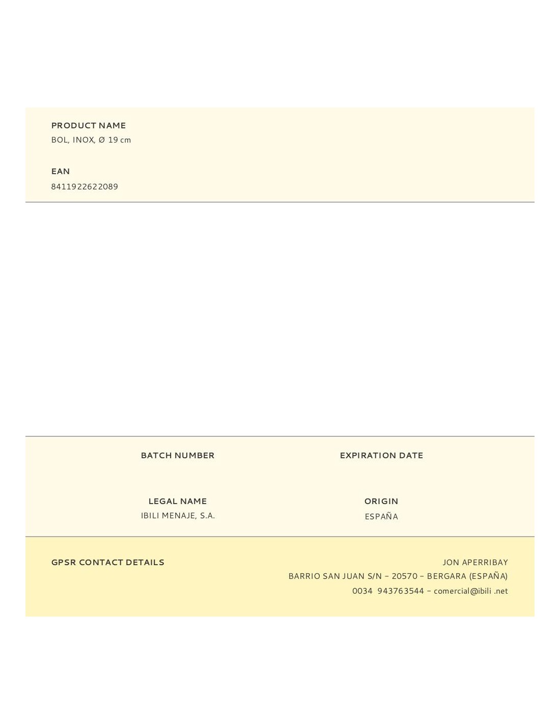 Bol de acero inoxidable. capacidad 1,00 l. medida: ø 19 cm