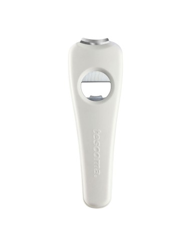 Abridor multifunción, color blanco. para abrir fácilmente botellas con tapón de metal, latas , tarros de conserva con tapas de rosca y lisas. material acero inoxidable y plástico, apto para lavavajillas