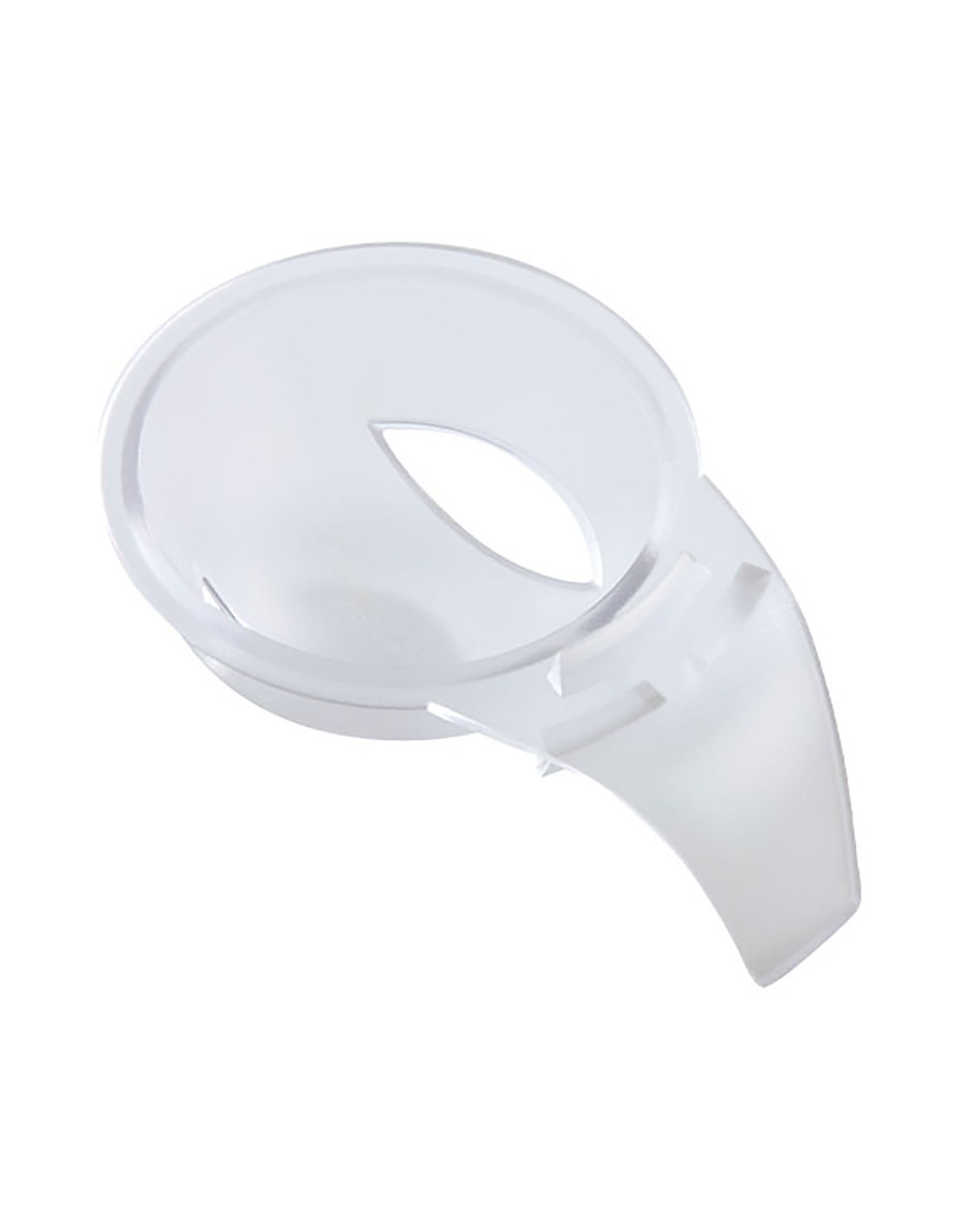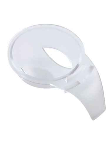 Para separar la clara del huevo el separador se adapta al borde de un vaso, se rompe el huevo y se deja caer la clara por los orificios fabricado de plástico