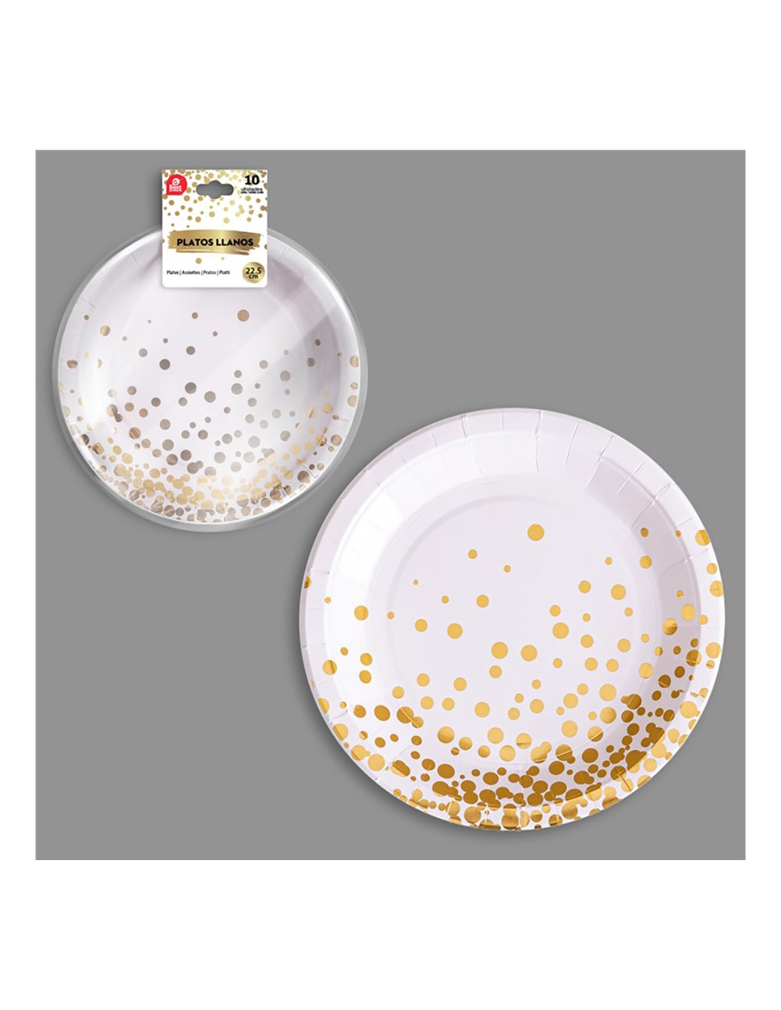 Plato llano cartón ø22,5 cm, blanco / dorado. 10 unidades