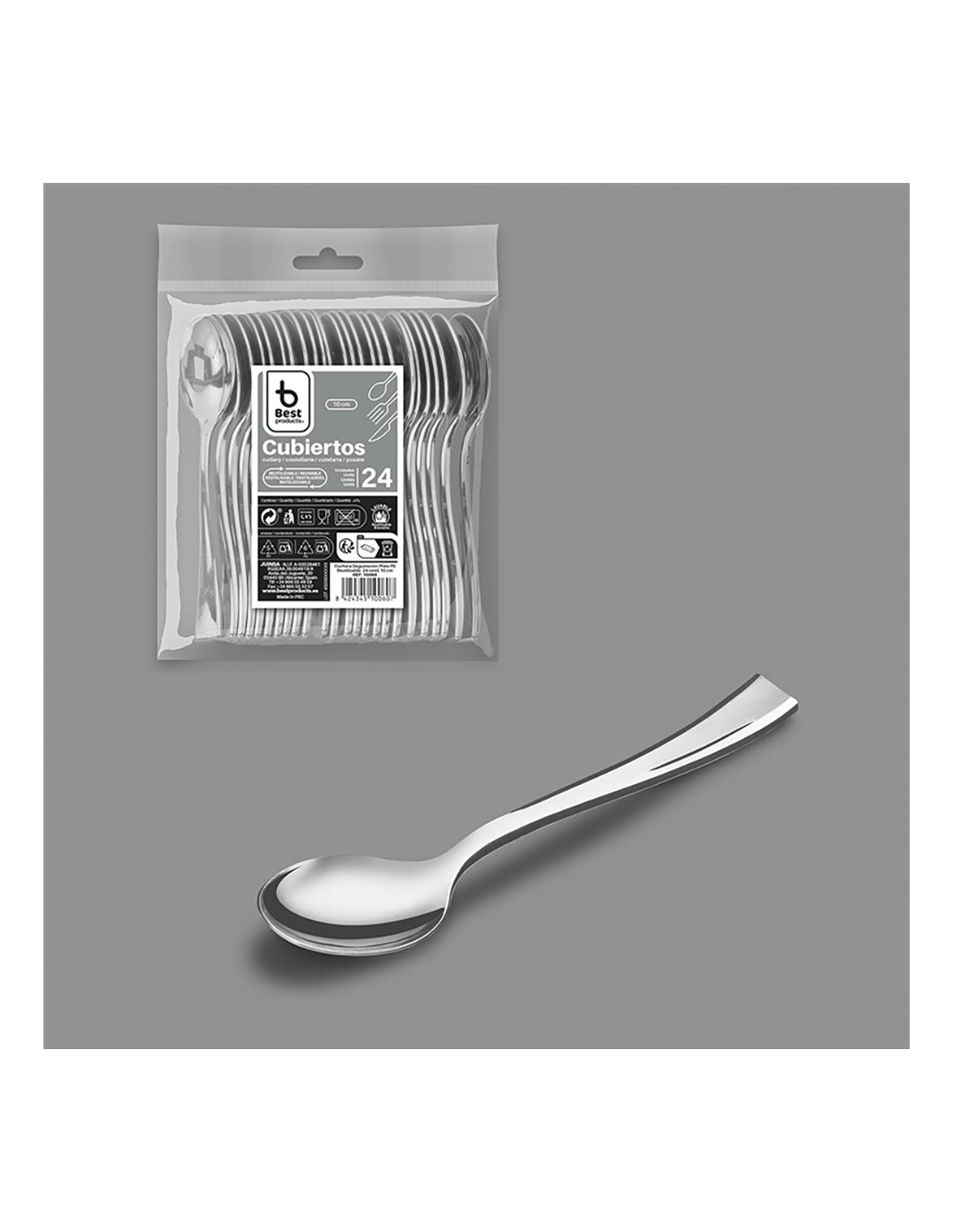 Cuchara de degustación 10 cm, reutilizable. 24 unidades. color plata. material plástico