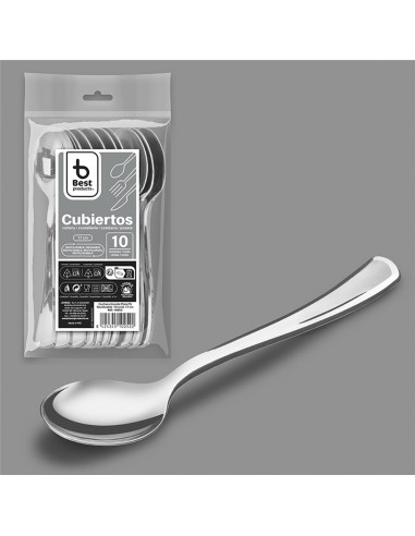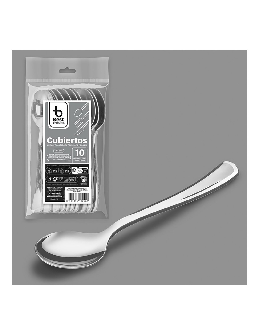 Cuchara reutilizable, 10 unidades. 17 cm, color plata. material plástico
