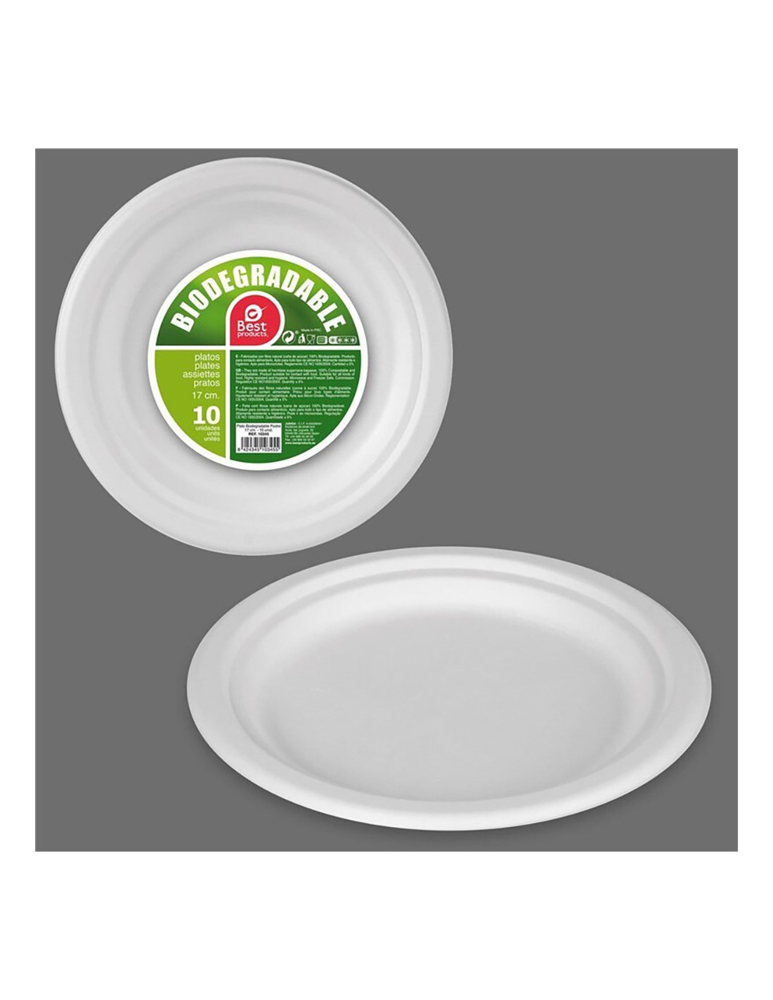 Plato postre biodegradable ø17 cm, 10 unidades. material caña de azúcar