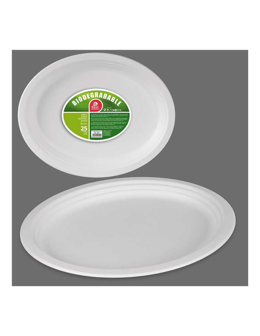 Plato oval biodegradable ø32 cm, 25 unidades. material caña de azúcar