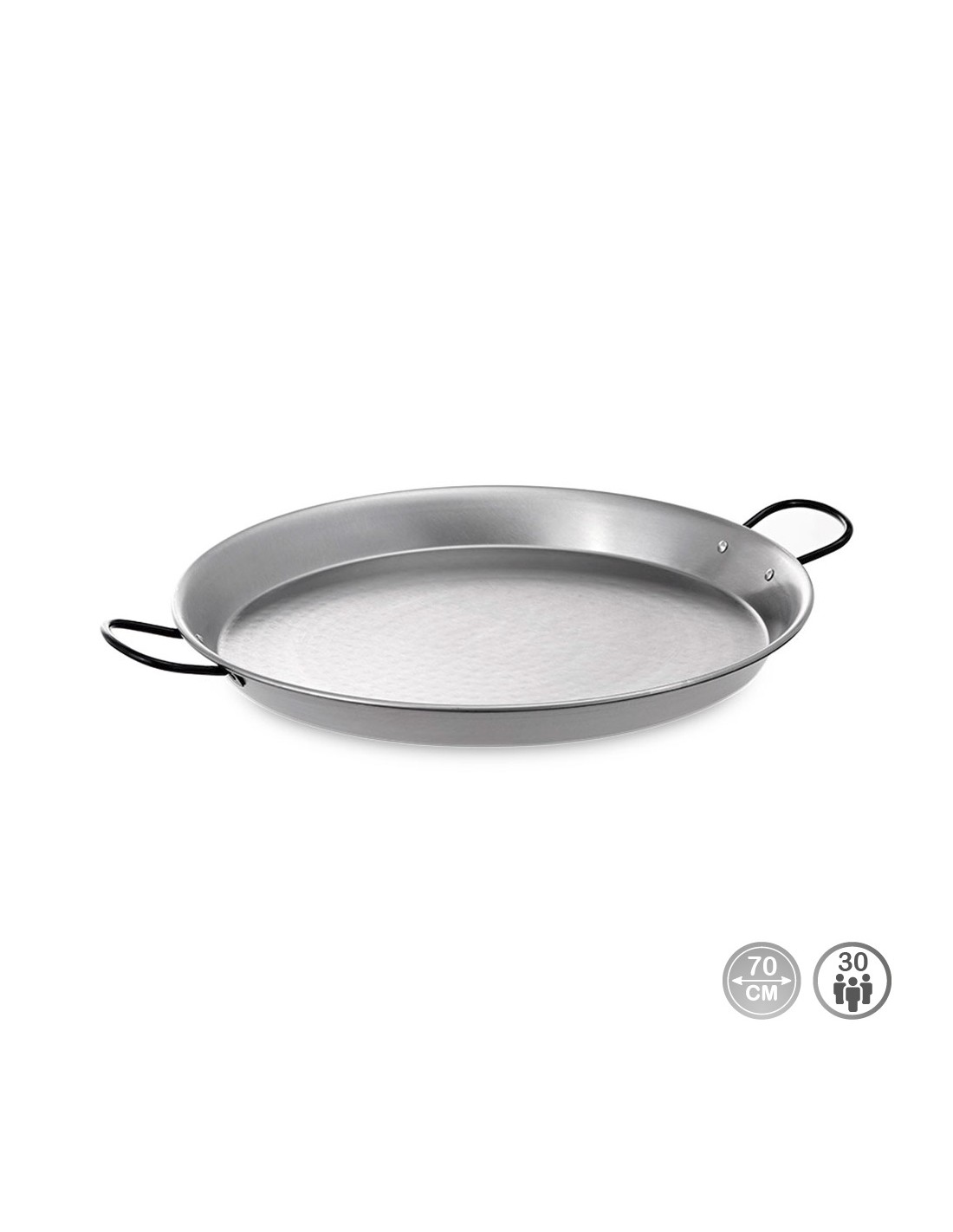 Producto fabricado en acero laminado en frío. indicado para fuego de llama. antes del primer uso, deberá lavar bien el producto con agua y jabón o, si lo prefiere, puede hacer hervir un poco de agua caliente a fuego lento durante 10-15 minutos también puede añadirle un poco de vinagre. una vez limpio, asegúrese de secarlo rápidamente y cubrirlo con una capa de aceite. no lo deje secar al aire libre y no lo ponga en el lavavajillas. al guardarlo, hágalo en un lugar seco y consérvelo envuelto en papel o una bolsa de plástico, si es posible