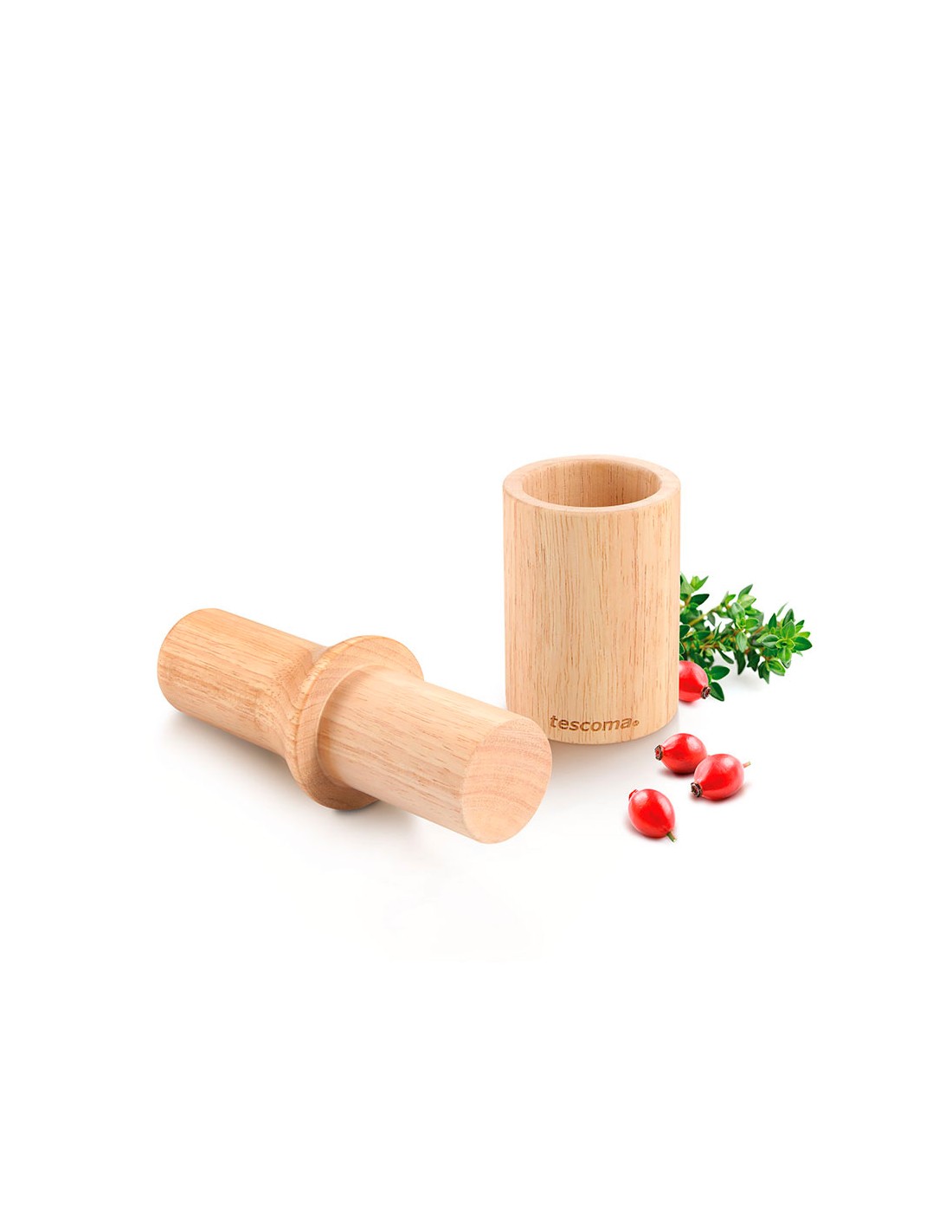 Mortero con maza de madera ø6 cm
