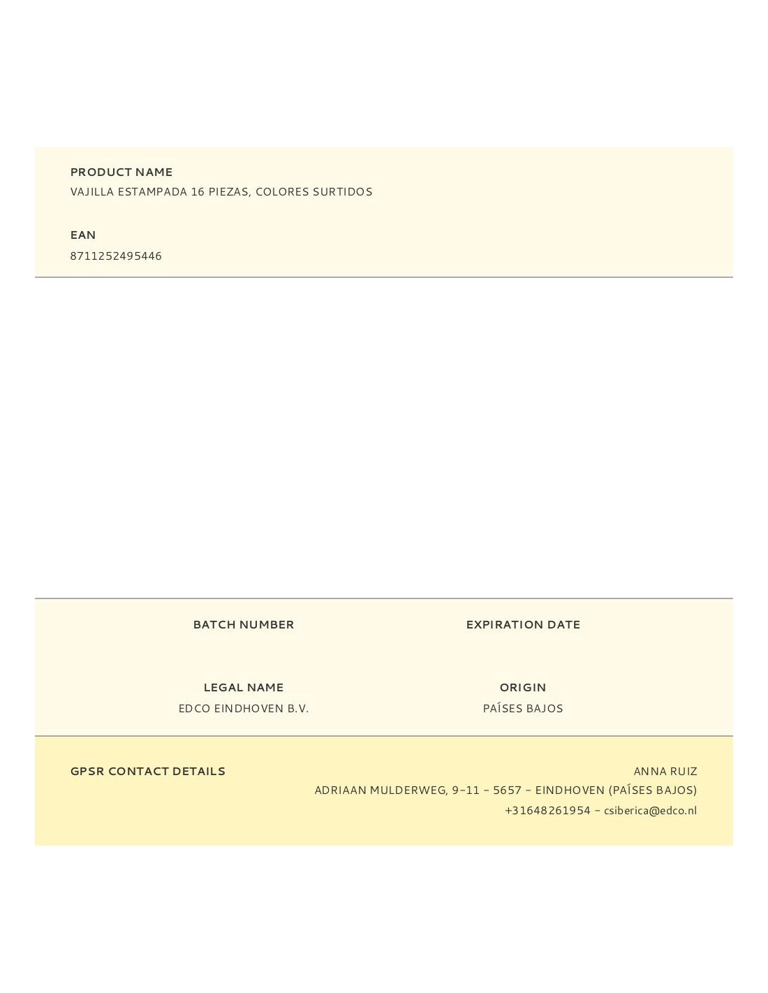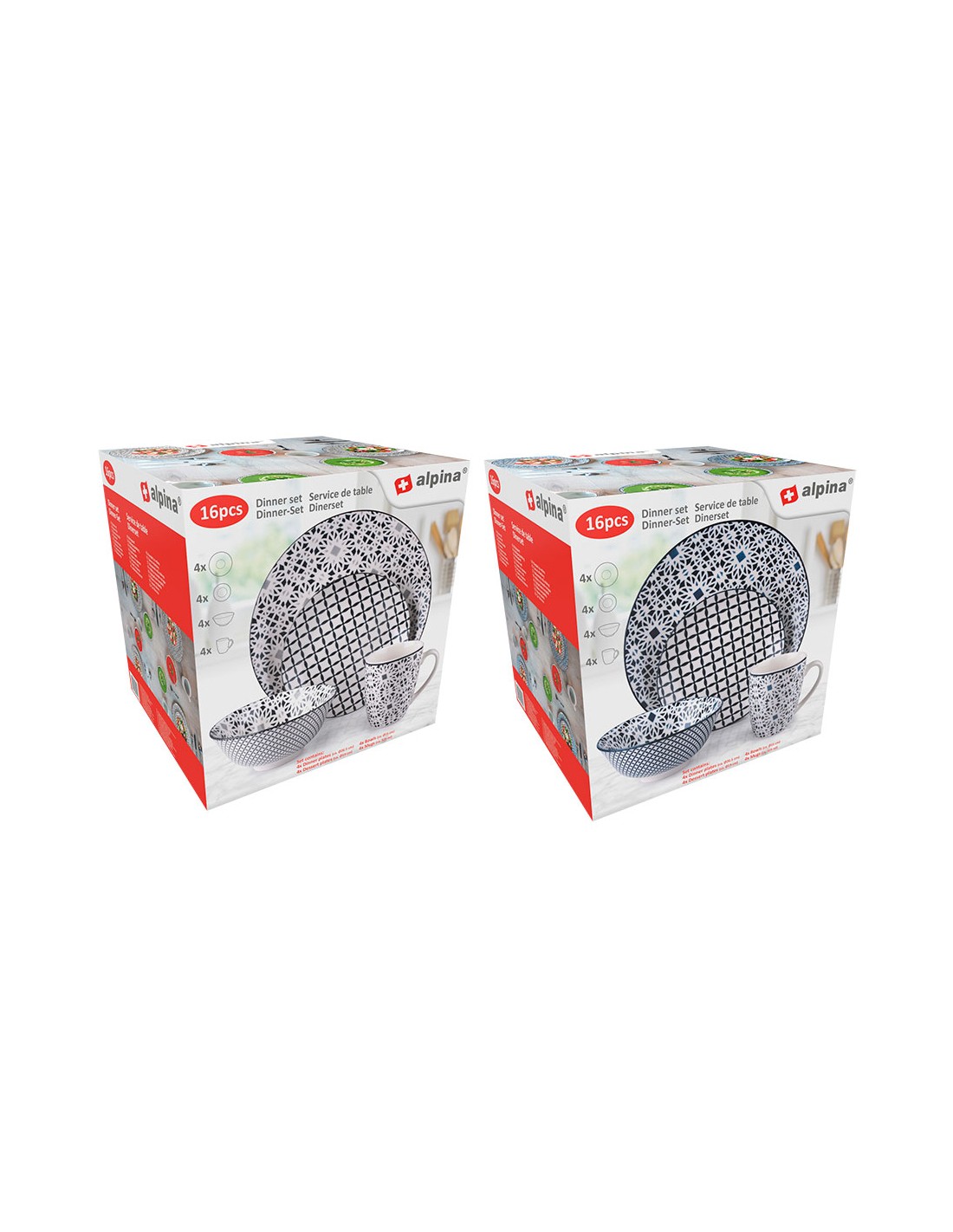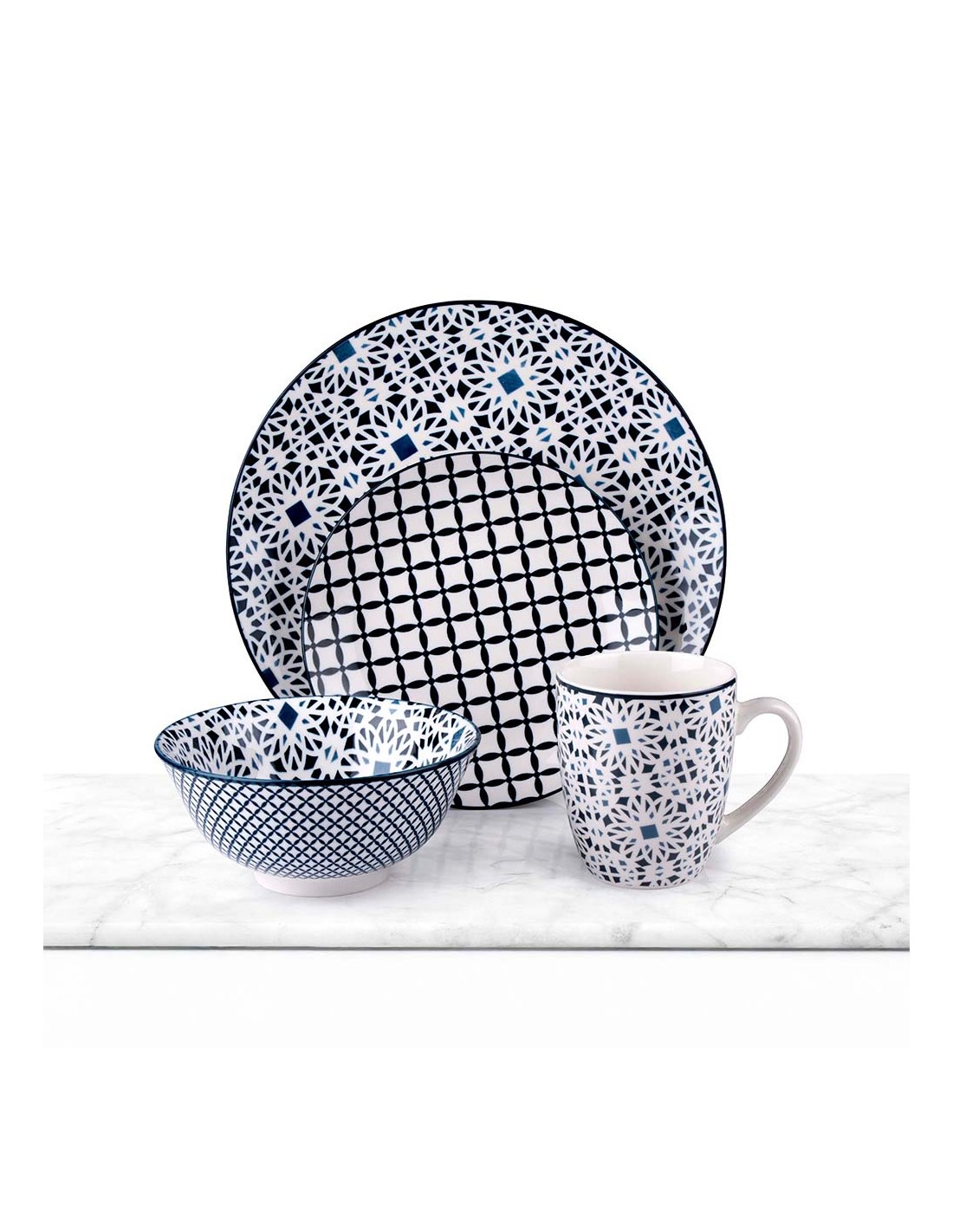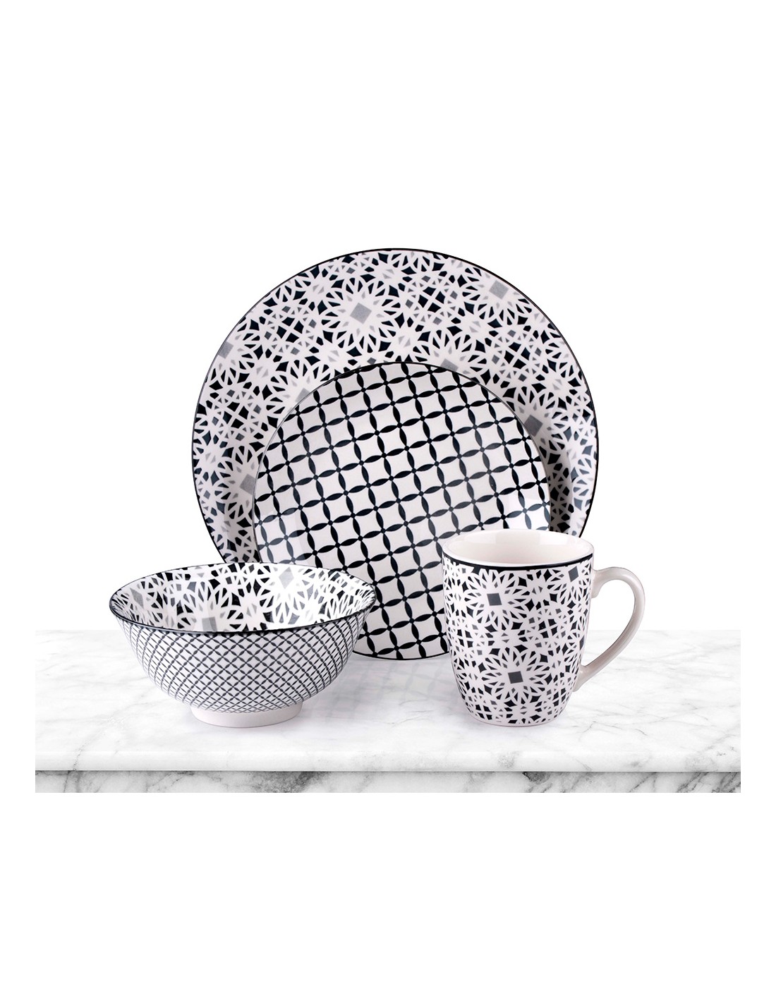 Vajilla de cerámica estampada 16 piezas, contiene 4 platos de ø26,5 cm, 4 platos de postre de ø19 cm, 4 bols de ø15 cm y 4 tazas de 325 ml