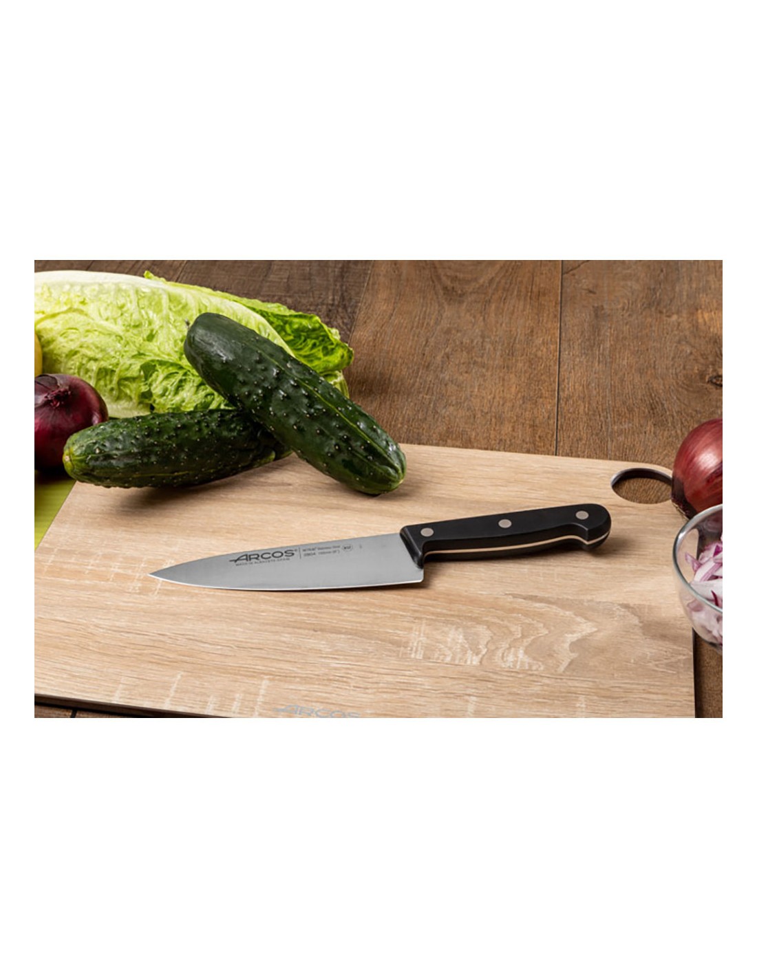 Cuchillo cocinero serie universal 155 mm. fabricado con acero exclusivo nitrum® que proporciona una durabilidad superior. resistente a productos químicos y temperaturas extremas. dispone de remaches machihembrados de acero inoxidable anti-corrosión. incluye la tecnología bactiproof silver que actúa como escudo contra los gérmenes y las bacterias de la superficie del mango.