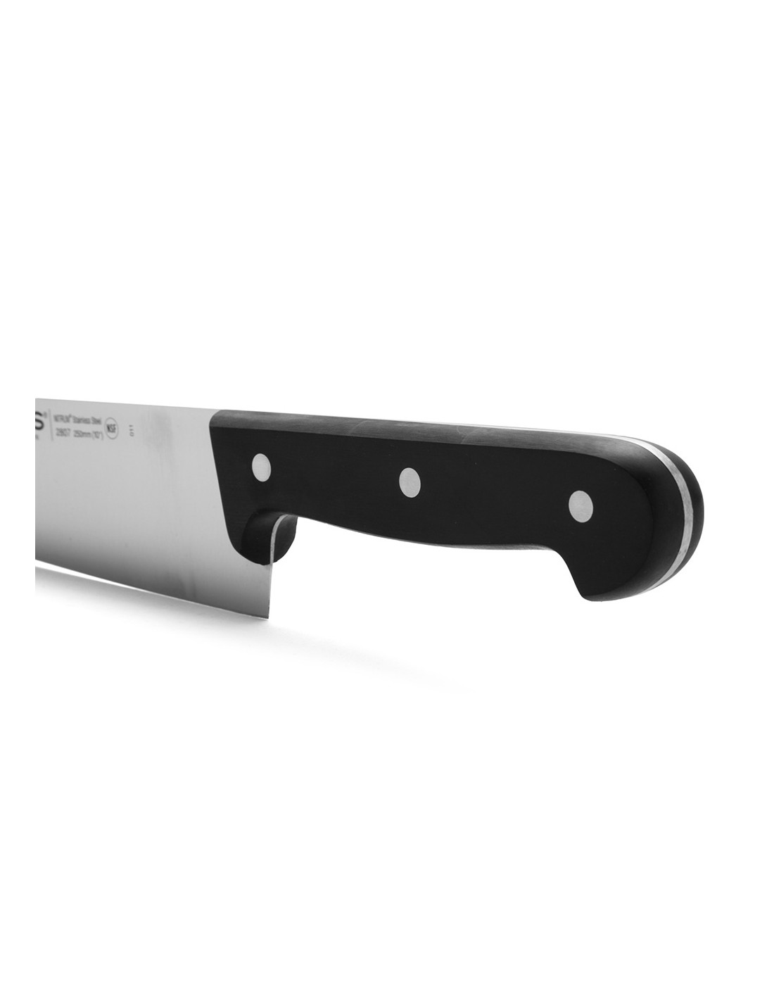 Cuchillo cocinero serie universal 250 mm. fabricado con acero exclusivo nitrum® que proporciona una durabilidad superior. resistente a productos químicos y temperaturas extremas. dispone de remaches machihembrados de acero inoxidable anti-corrosión. cuenta con sistema anti-bacteriano aplicado en el mango que reduce en un 99.9% la presencia de bacterias, hongos y moho