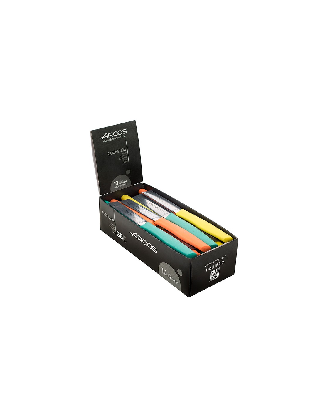 Cuchillos mondadores serie nova colores surtidos, expositor 36 uds. hoja de acero inoxidable nitrum® de alta resistencia y durabilidad. especialmente diseñada para pelar frutas y tubérculos. mango ergonómico fabricado en polipropileno