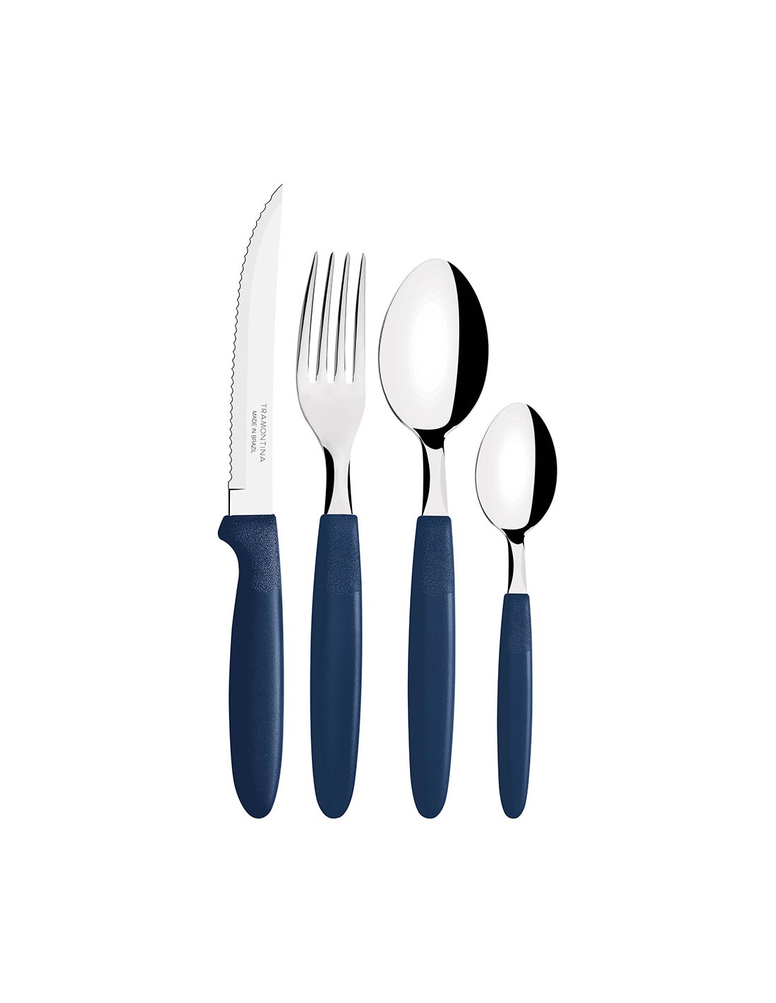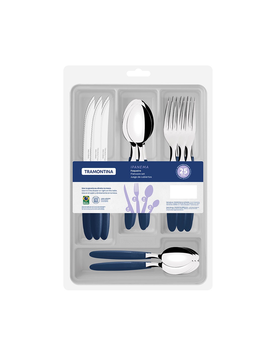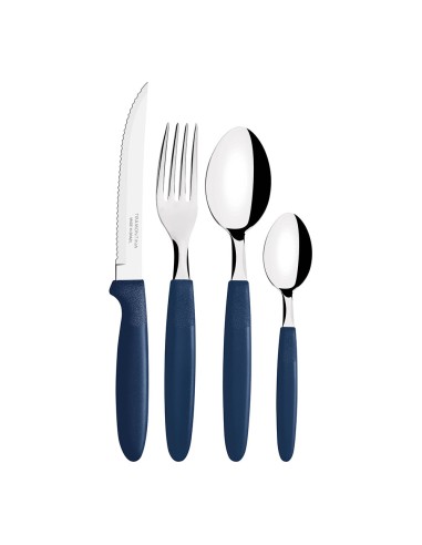 Cubertería de 25 piezas ipanema, en acero inoxidable, mangos de color azul de polipropileno. incluye: organizador de plástico. 6 cuchillos, 6 tenedores, 6 cucharas y 6 cucharas pequeñas