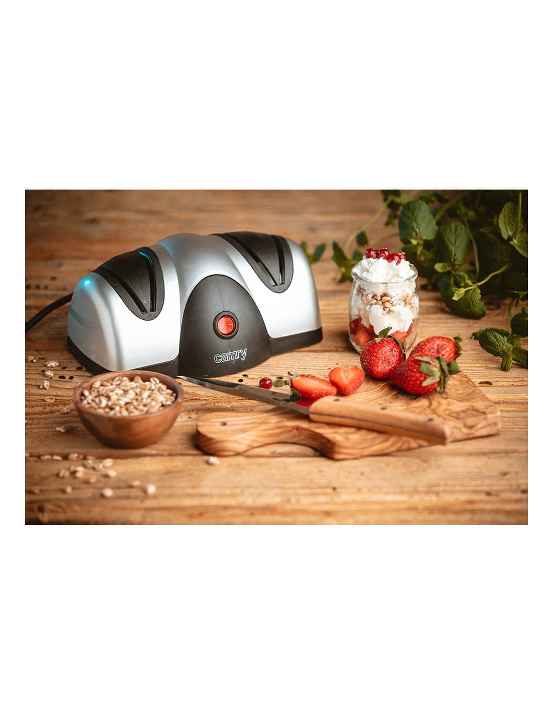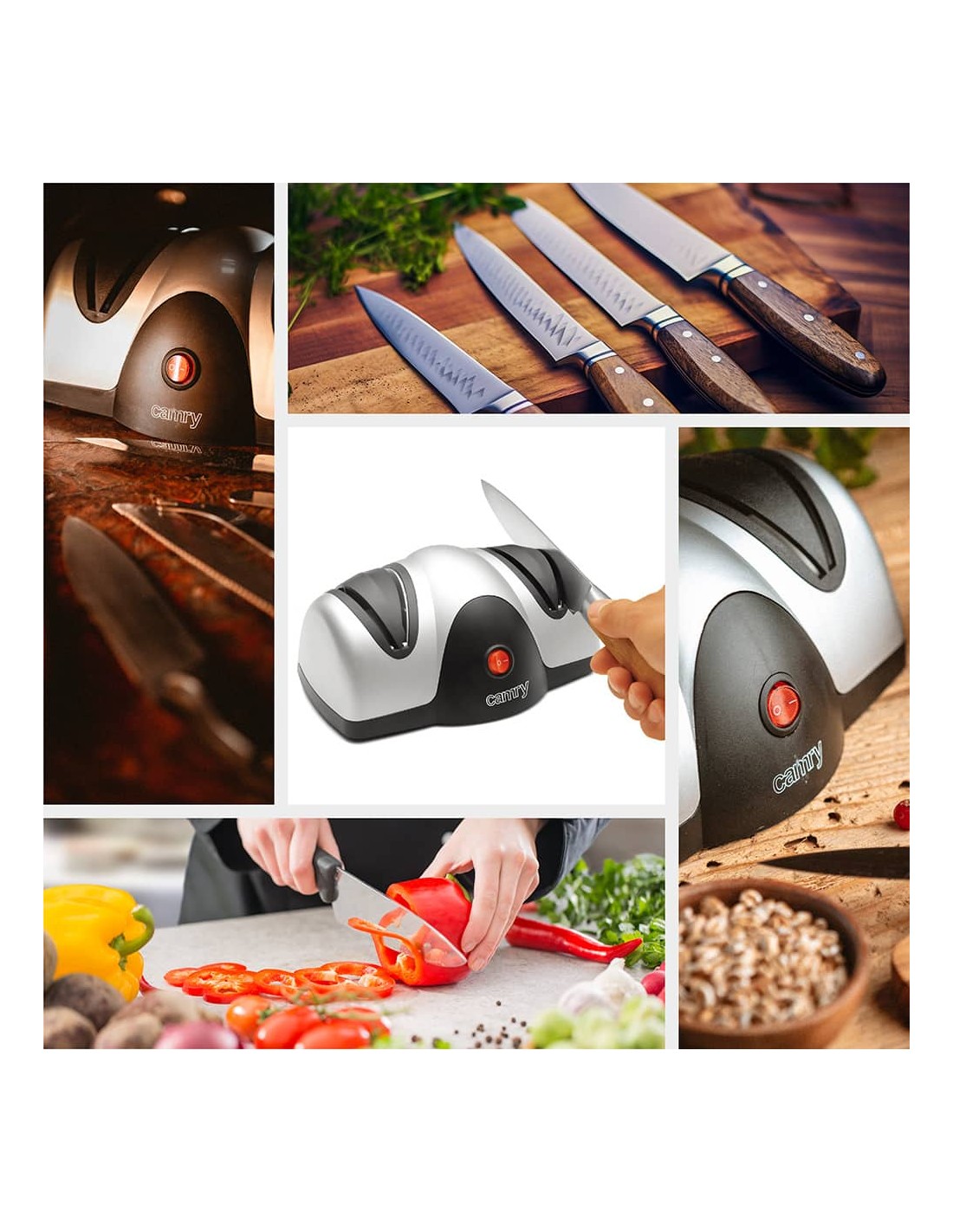 Afilador de cuchillos eléctrico cr 4469, 60 w afilado rápido y sencillo de cuchillos de acero, navajas, etc sistema de afilado y pulido de dos pasos guía precisa en el ángulo de afilado perfecto, fácil de limpiar, ventosas robustas de sujeción 220-240 v~50-60 hz 21 x 8,5 x 15 cm