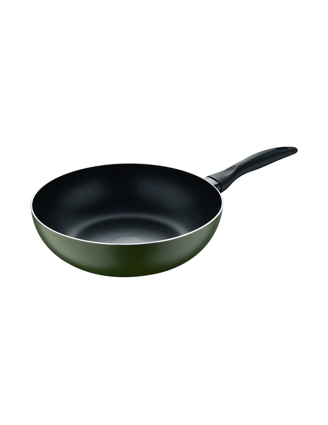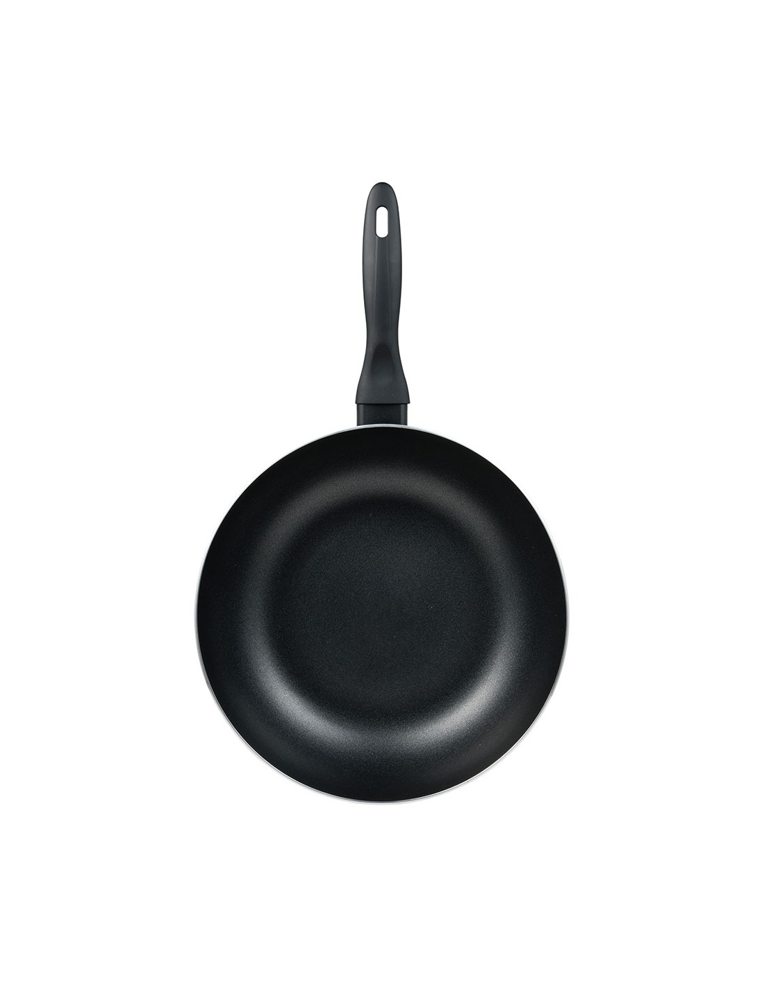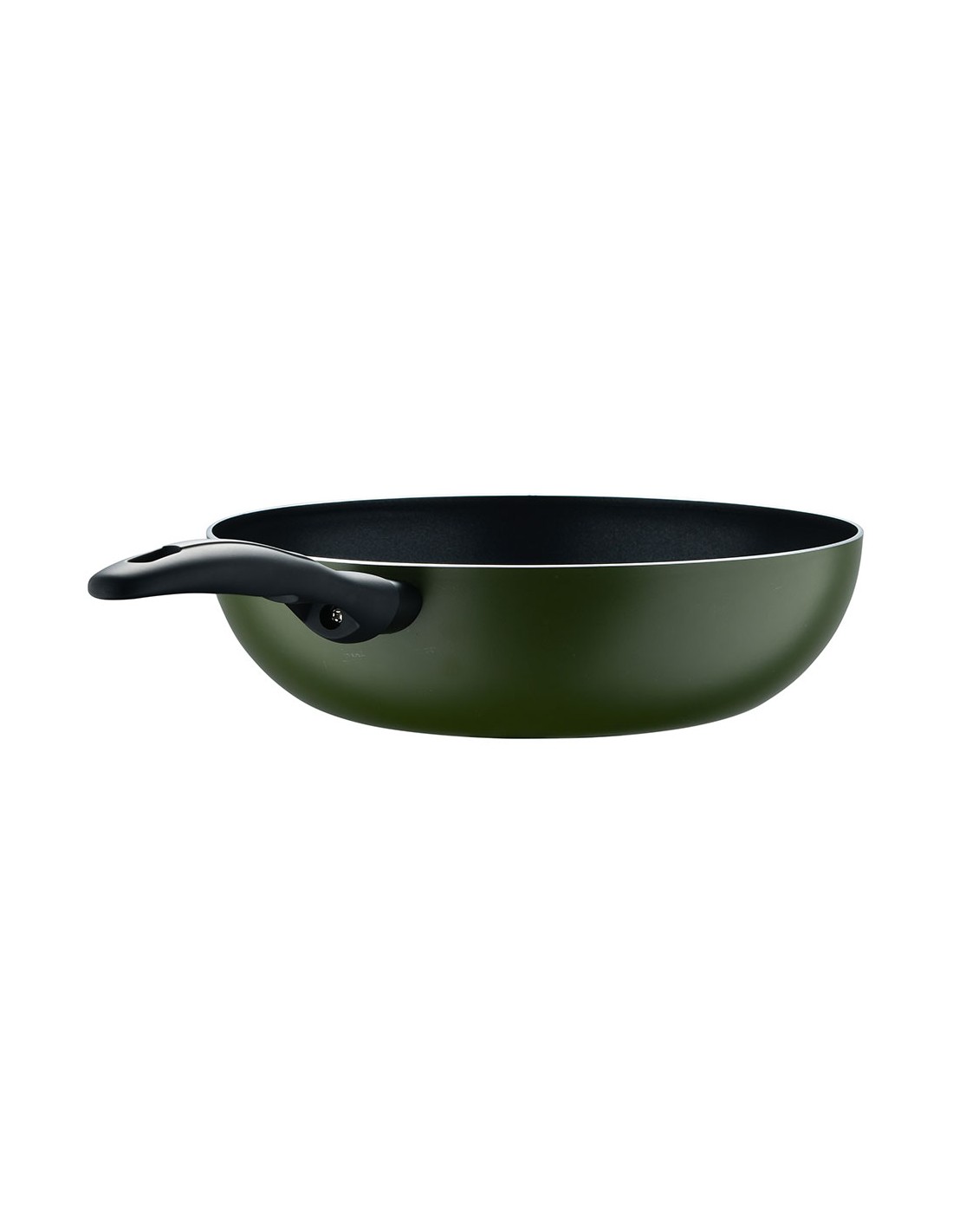 Wok de aluminio prensado para inducción, interior con revestimiento negro, exterior resistente al calor en pq-7764c. mango negro resistente al calor con tacto suave, ø28 x 7,5 cm