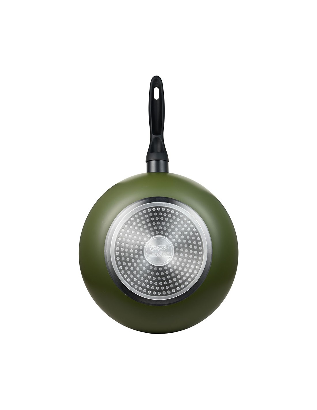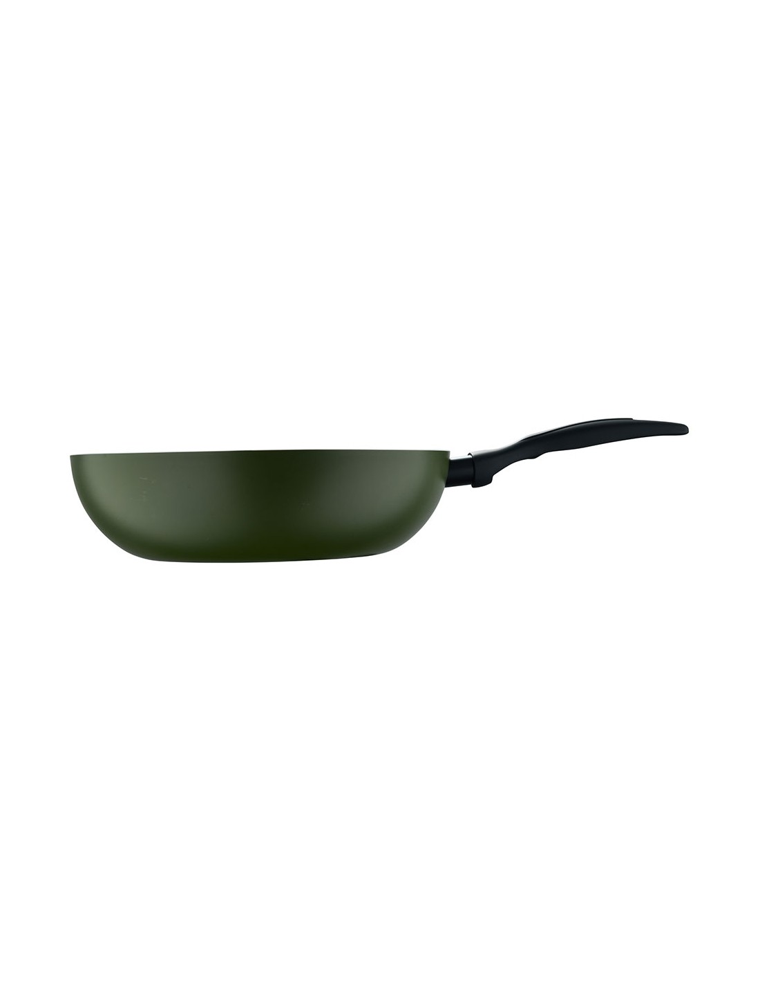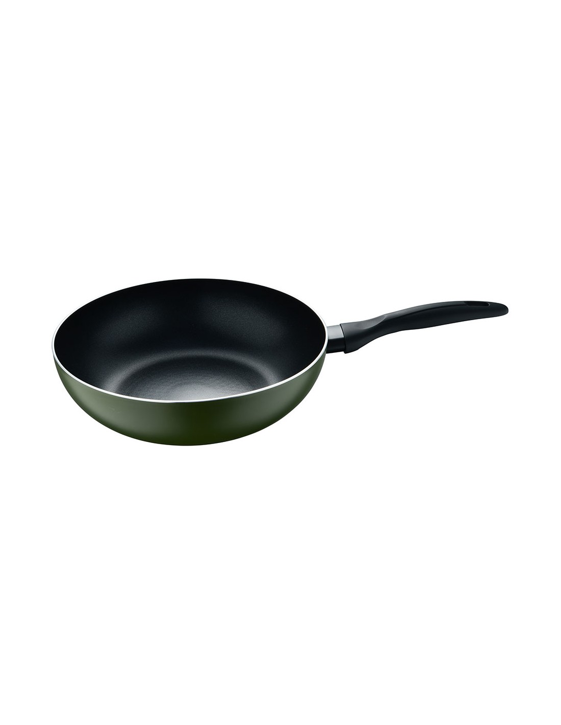 Wok de aluminio prensado para inducción, interior con revestimiento negro, exterior resistente al calor en pq-7764c. mango negro resistente al calor con tacto suave, ø28 x 7,5 cm