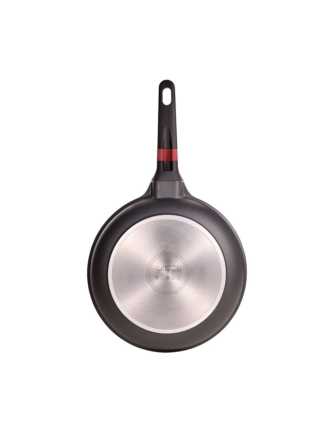 Sartén de aluminio fundido para inducción, interior con revestimiento ilag premium, mango de baquelita con tacto suave y línea de color rojo. ø26 x 5,5 cm