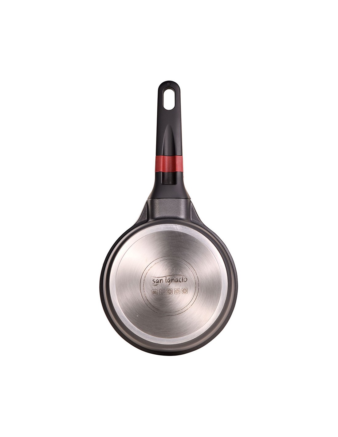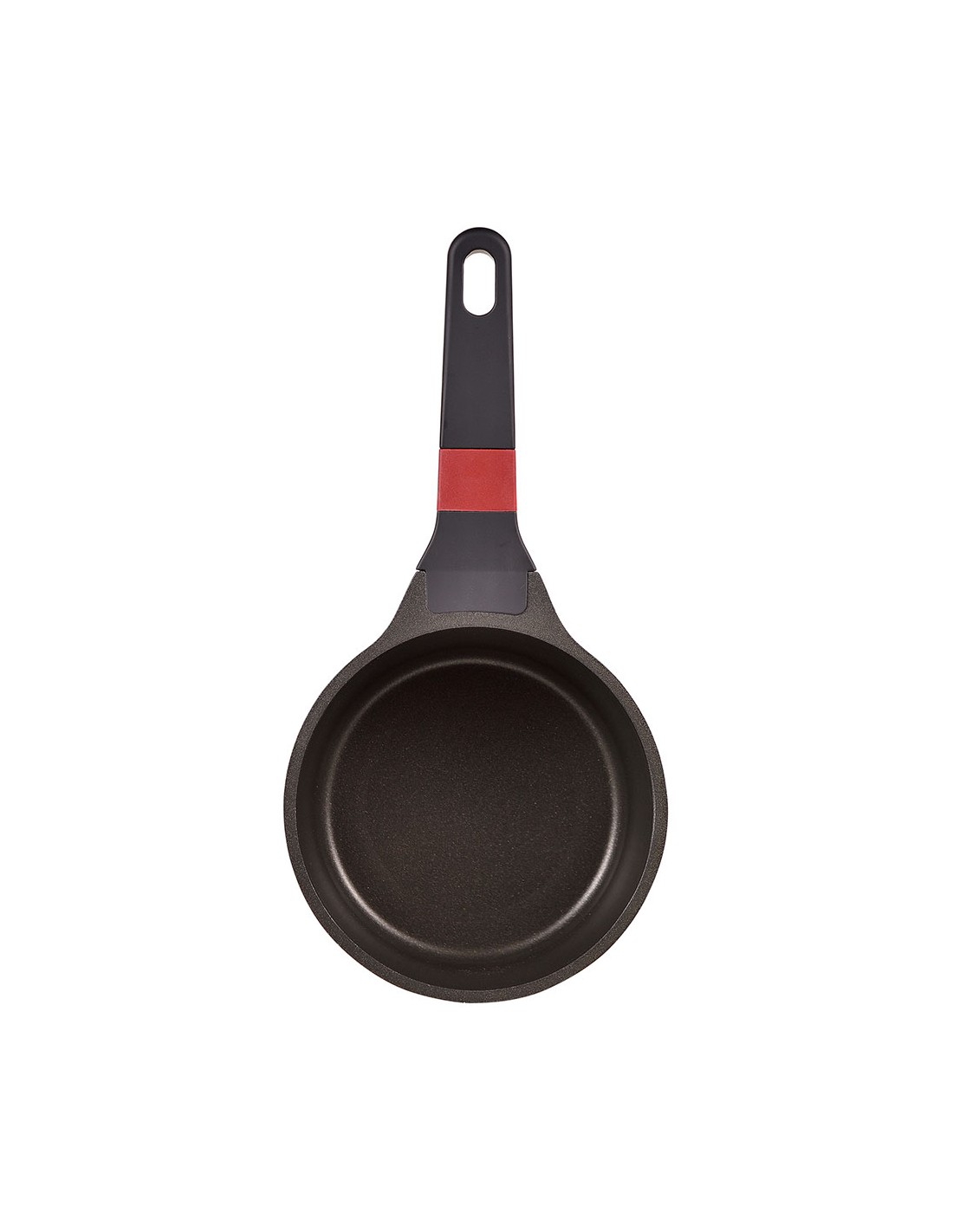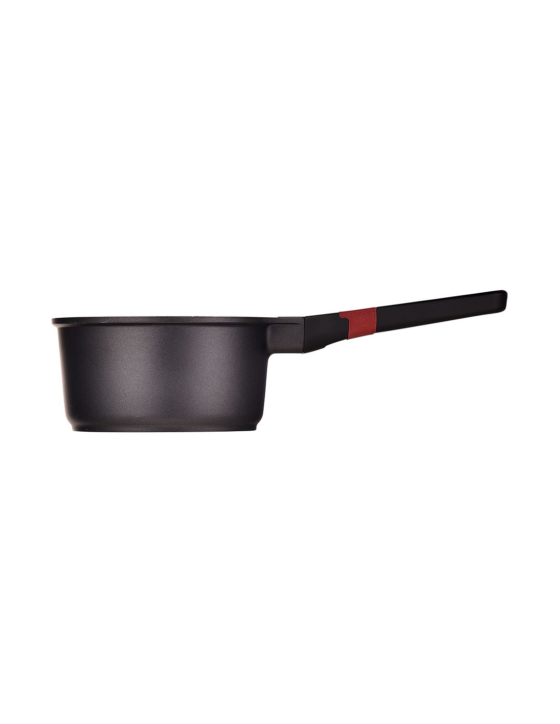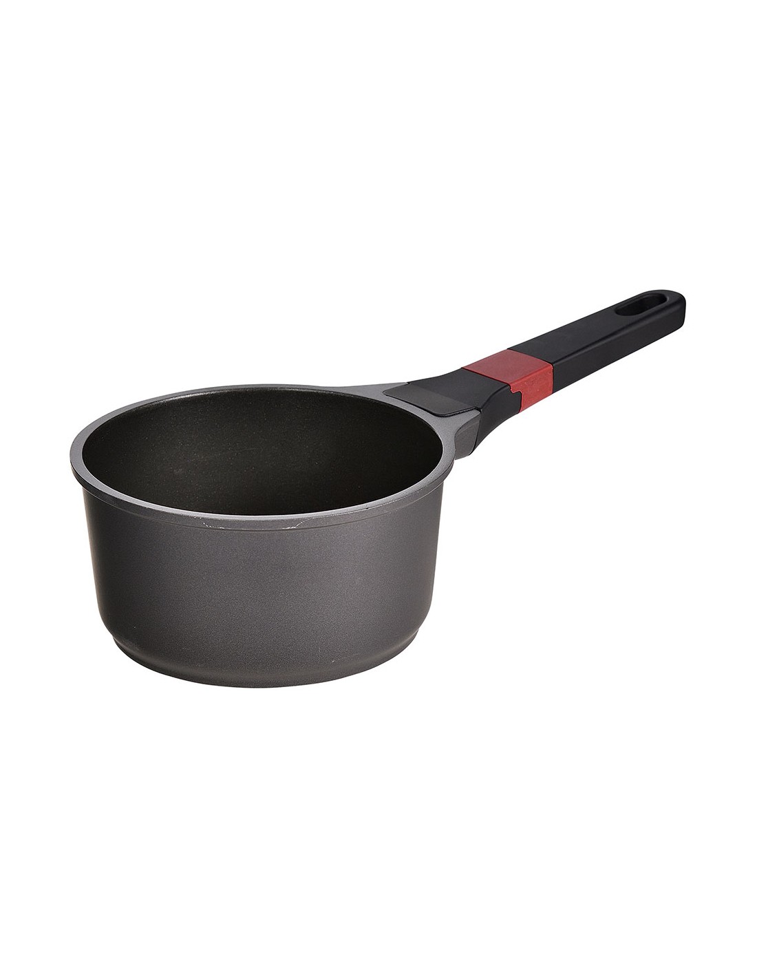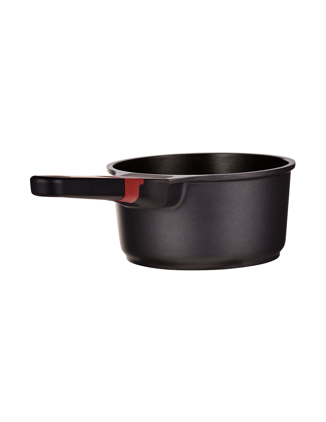 Cazo de aluminio fundido para inducción, interior con revestimiento ilag premium, mango de baquelita con tacto suave y línea de color rojo. ø16 x 8,4 cm
