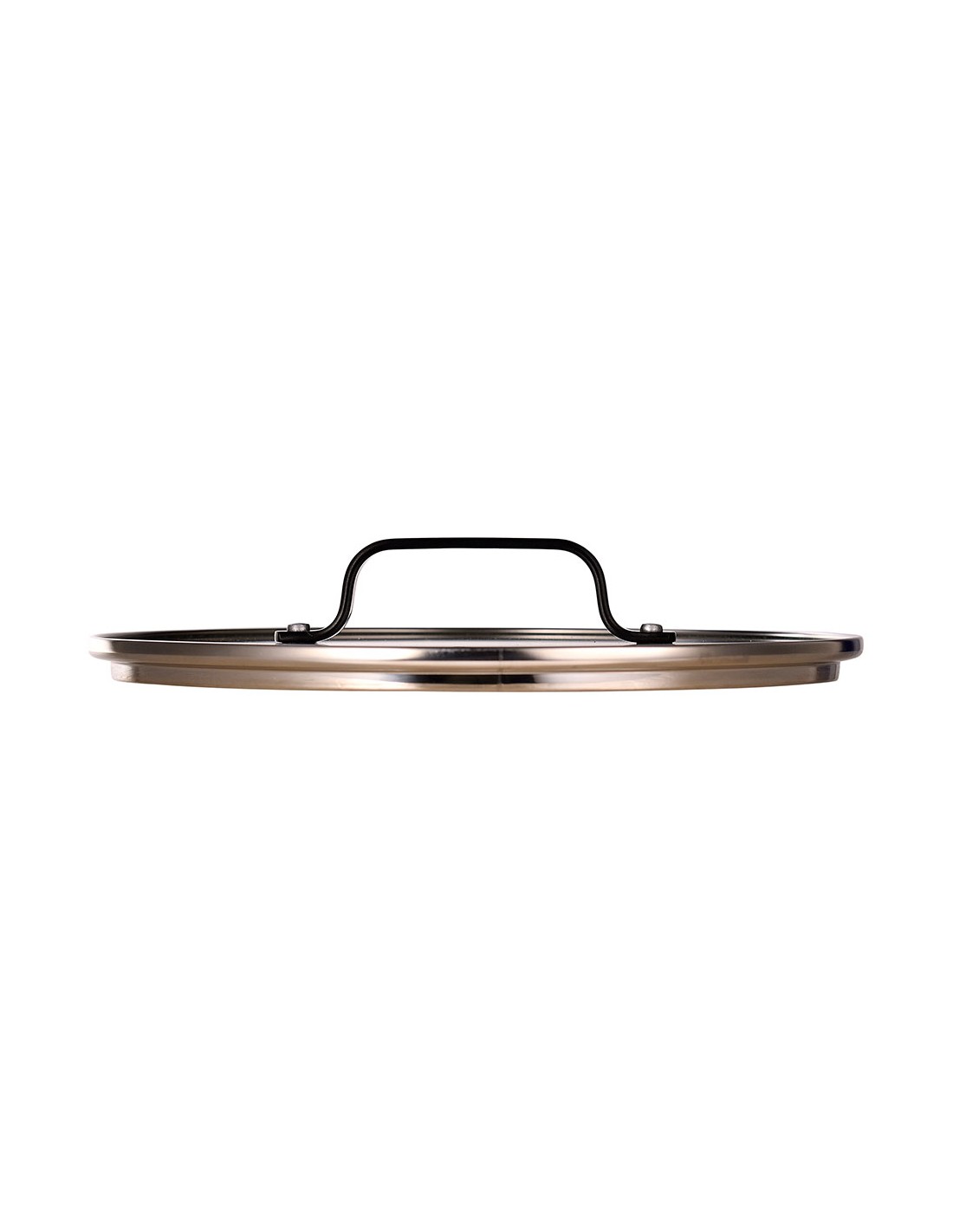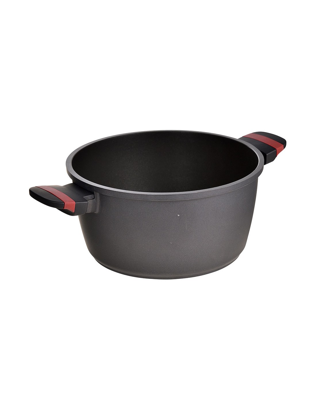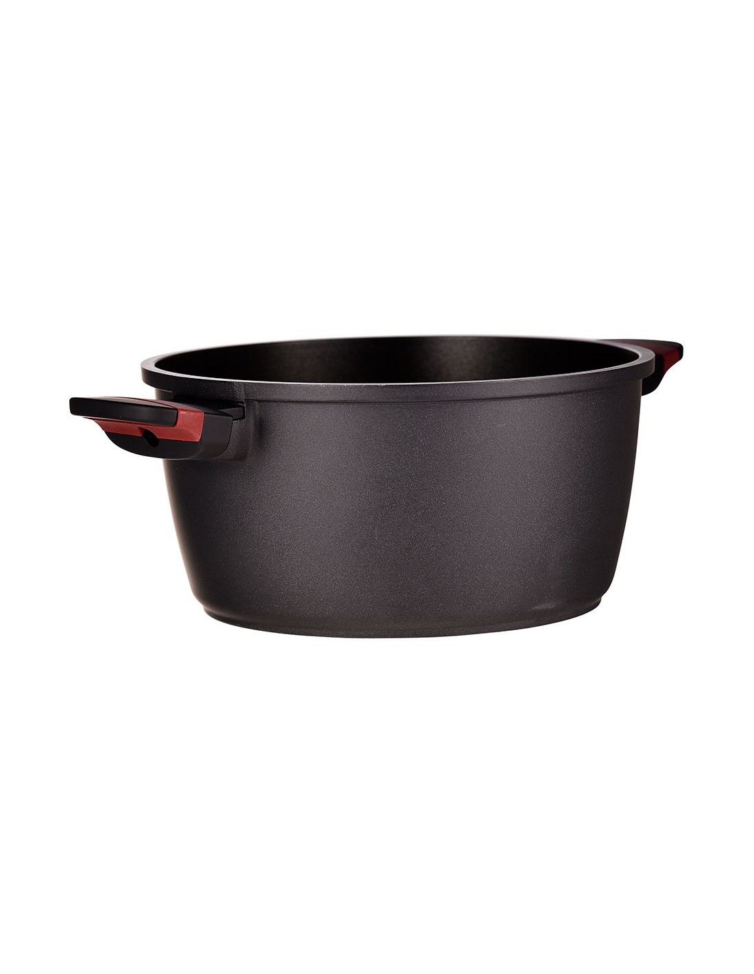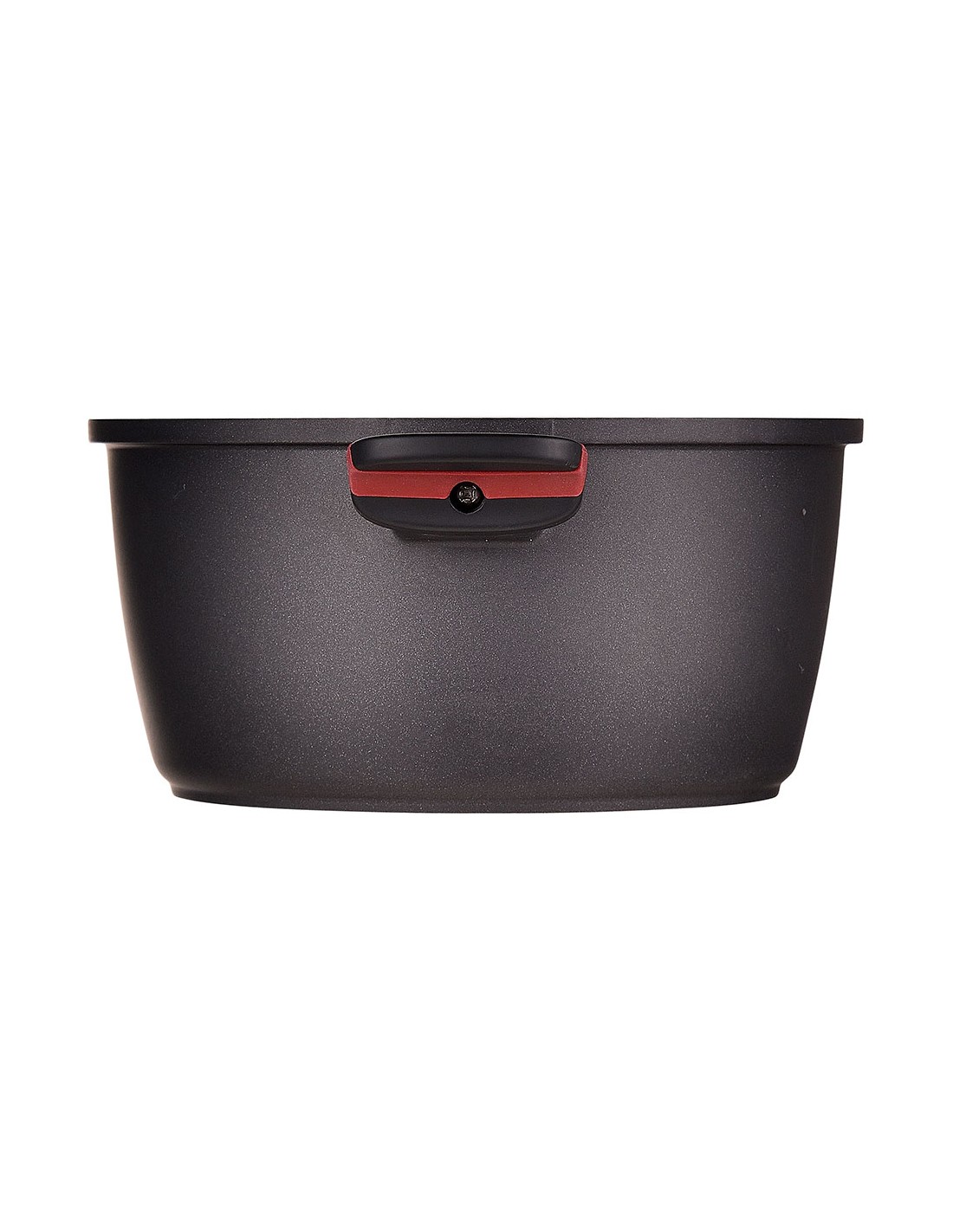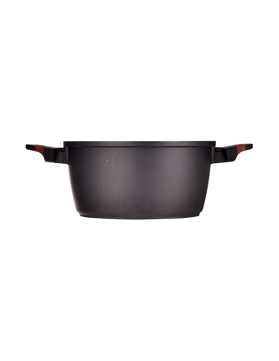Cacerola de aluminio fundido, con tapa de cristal, para inducción, interior con revestimiento ilag premium. asas de baquelita con tacto suave y línea de color rojo. ø24 x 12,5 cm
