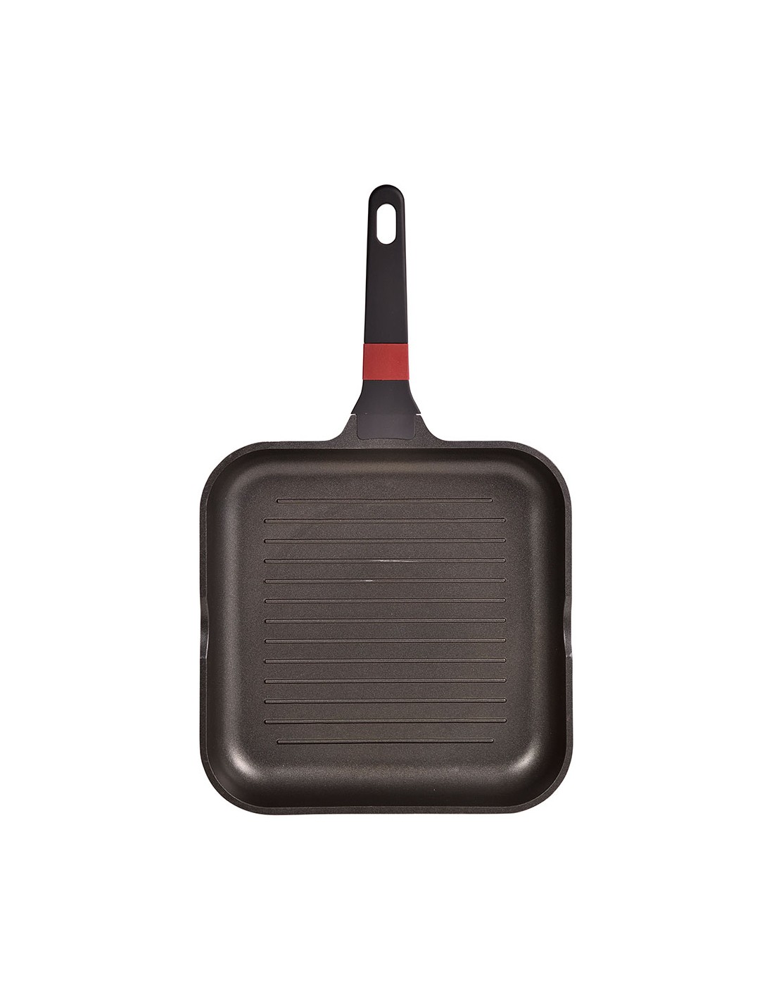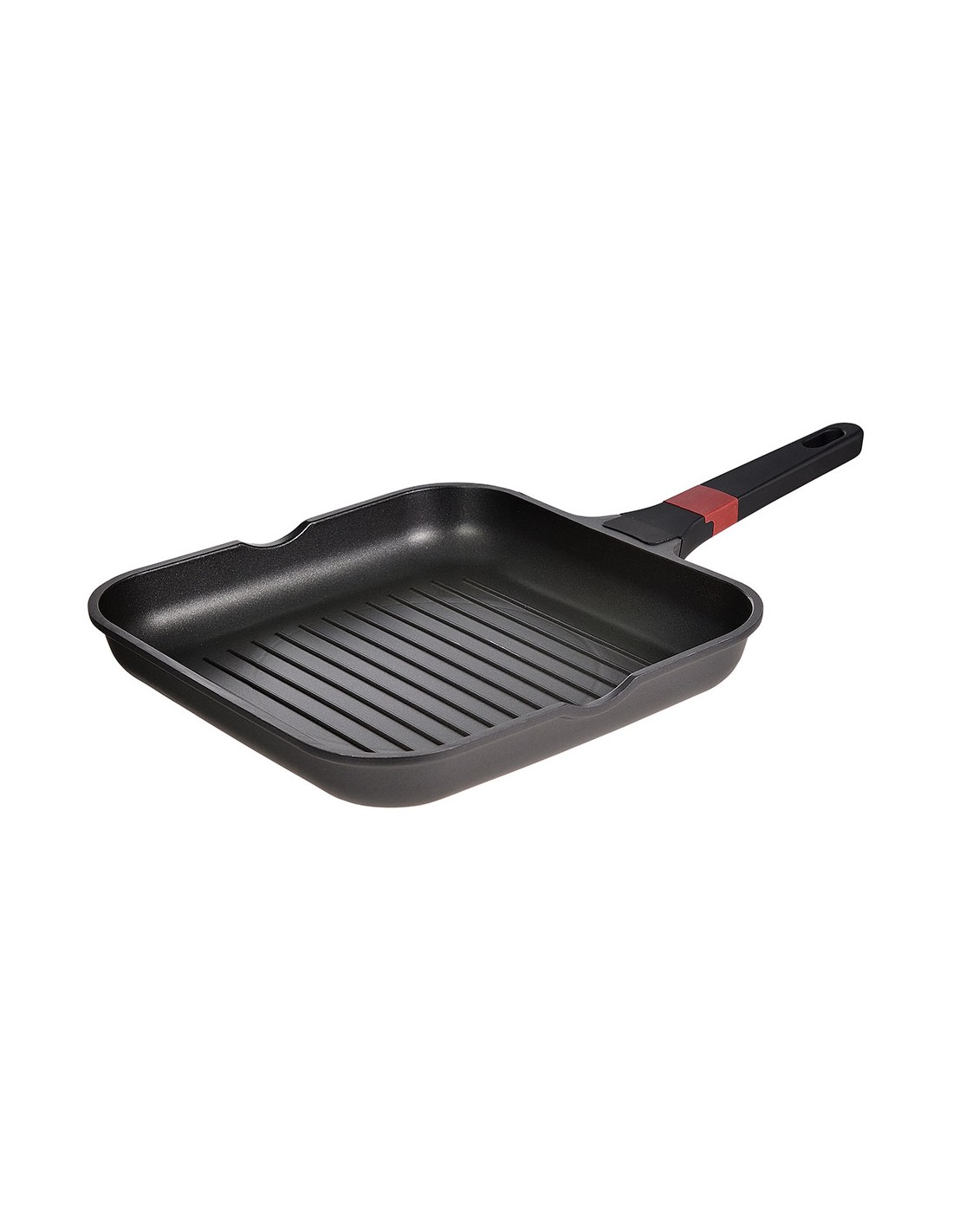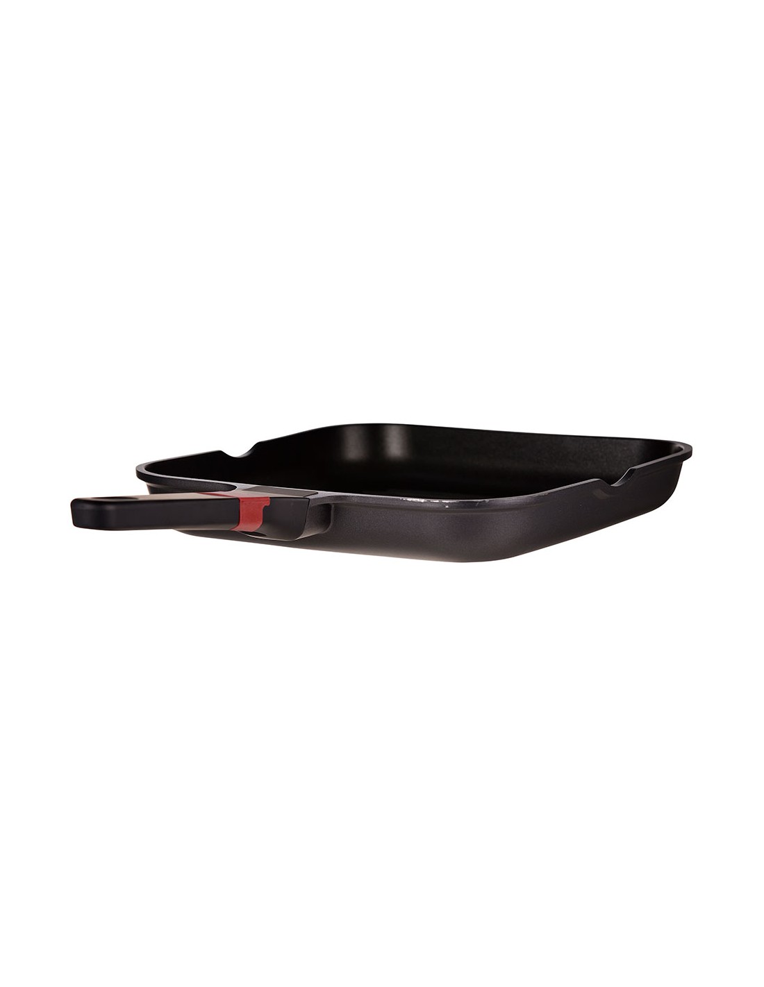 Asadora de aluminio fundido, para inducción, interior con revestimiento ilag premium. mango de baquelita con tacto suave y linea de color rojo. 28 x 28 x 4,5 cm