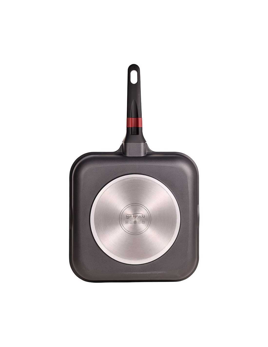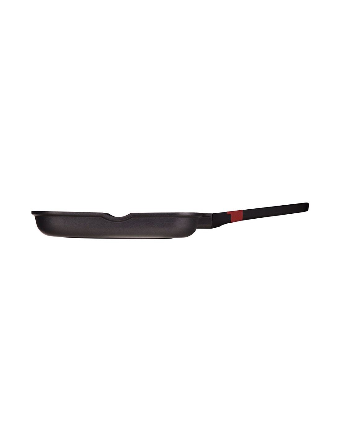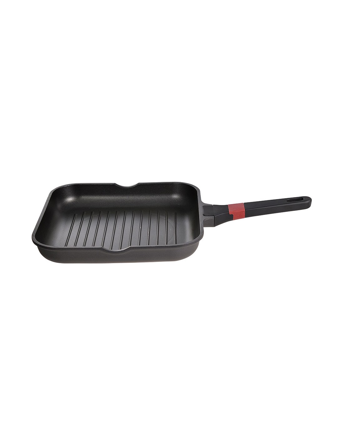 Asadora de aluminio fundido, para inducción, interior con revestimiento ilag premium. mango de baquelita con tacto suave y linea de color rojo. 28 x 28 x 4,5 cm