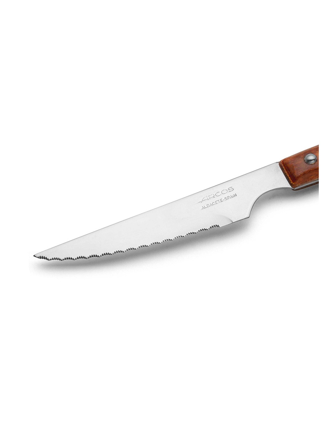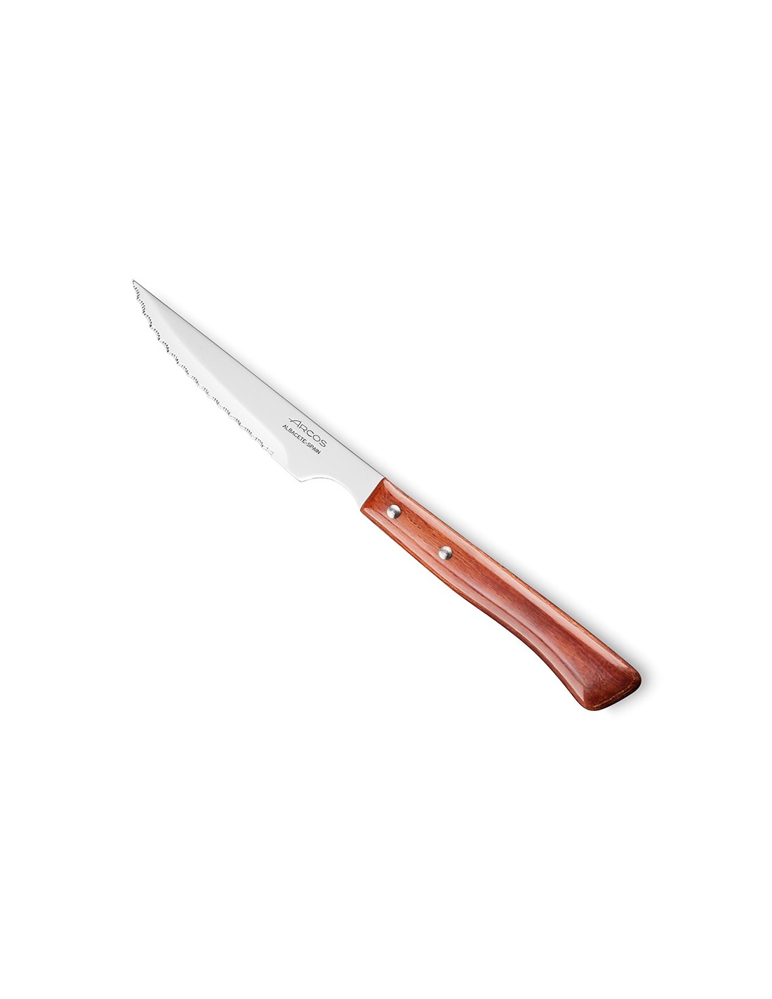 Cuchillo chuletero serie gregorio 110 mm con hoja de acero inoxidable nitrum®, material resistente, duradero y con excelente corte. sin necesidad de afilado. mango hecho a base de madera de haya comprimida, que le aporta un peso ligero y es suave al tacto. con remaches de acero inoxidable para asegurar una unión firme entre la hoja y el mango. apto para el lavavajillas
