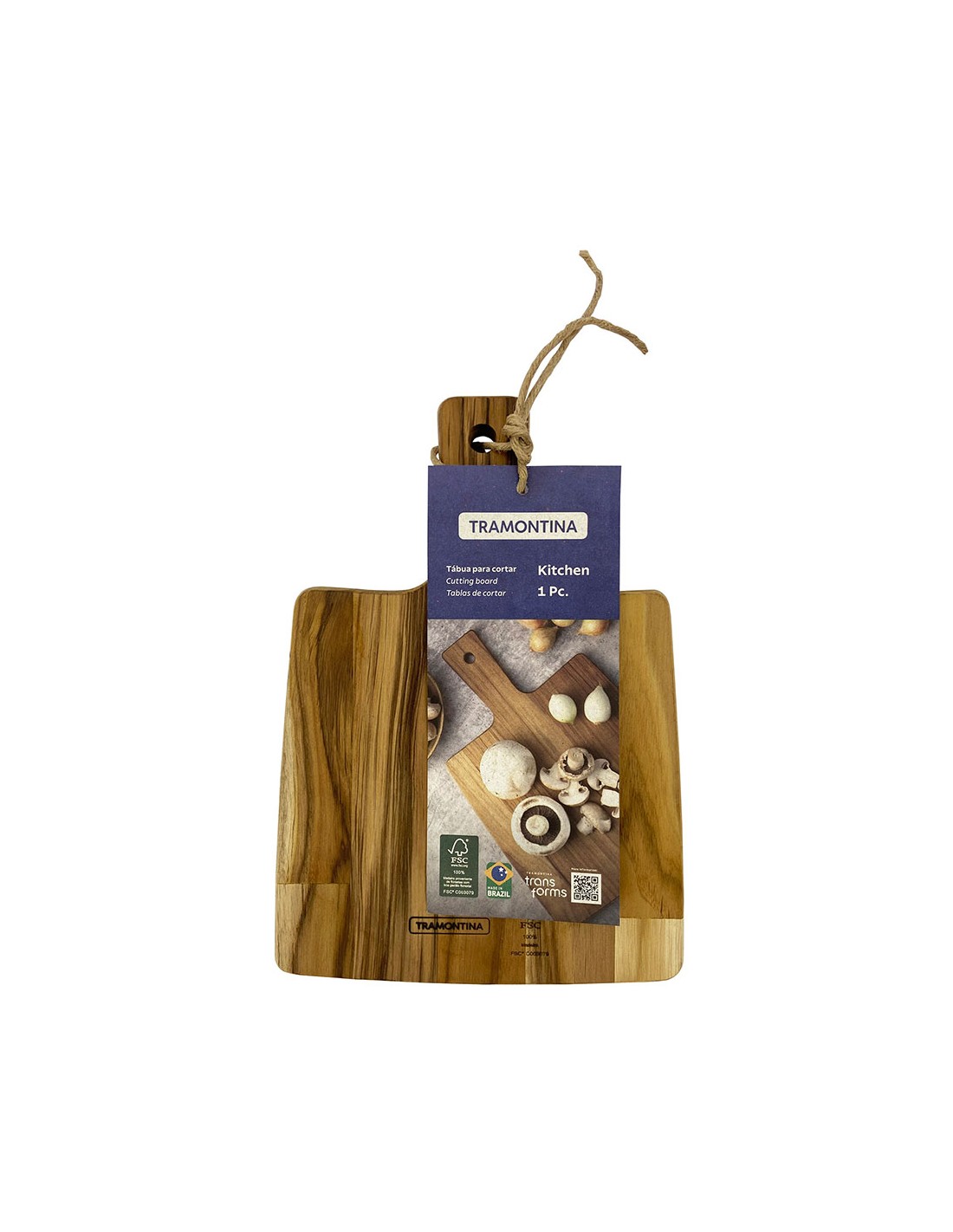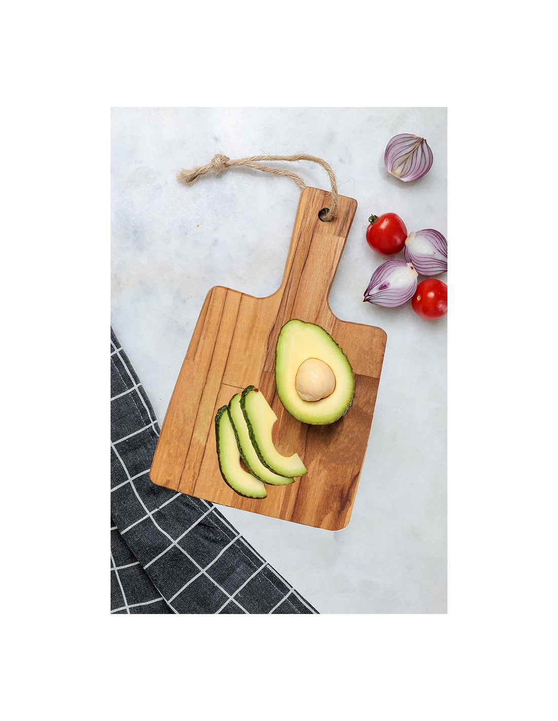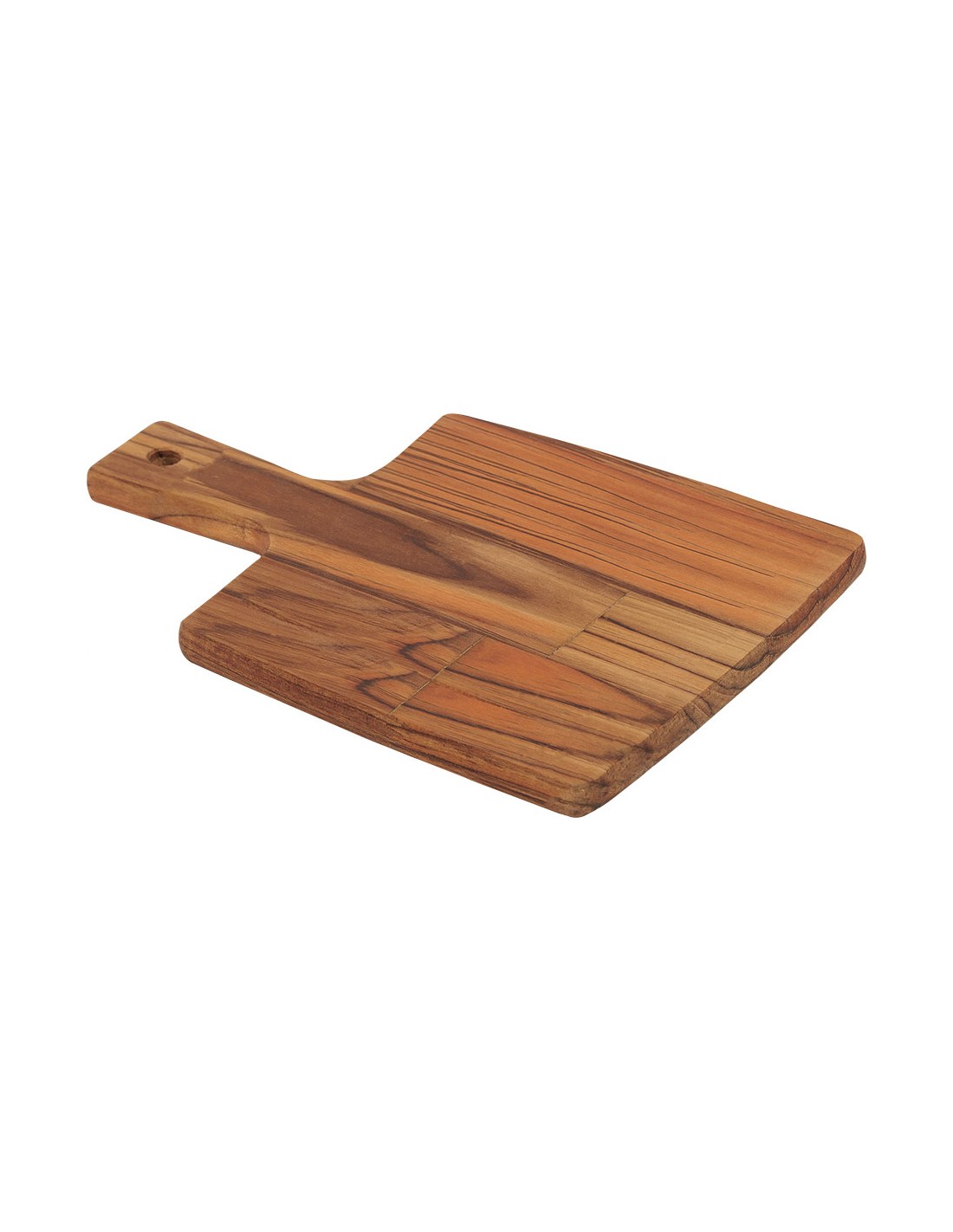 Tabla de cortar rectangular en madera teca fsc® con mango integrado, con acabado con aceite mineral que protege la superficie, reduce la absorción de humedad y facilita la limpieza, con tratamiento antimicrobiano, color natural, elemento funcional y decorativo, dimensiones: 19,5 x 18,5 x 1,8 cm, mango 9 cm