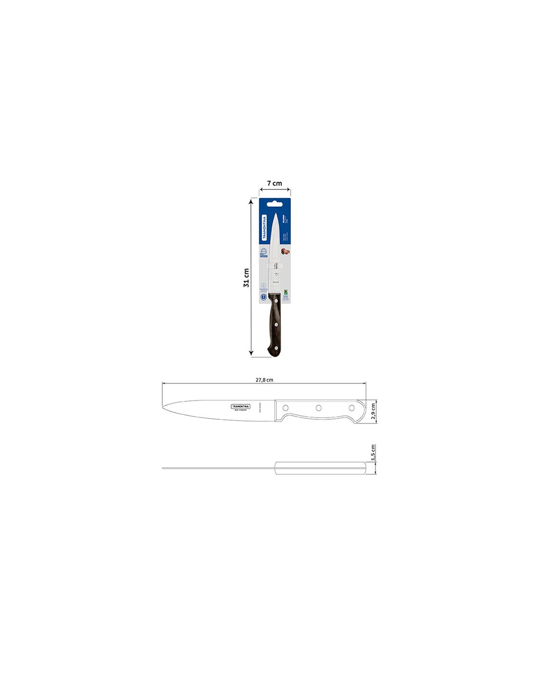 Cuchillo polywood para cocina 15 cm. con una hoja de acero inoxidable y mango de madera tratada en color castaño. su hoja de acero inoxidable recibe tratamiento térmico, lo que garantiza un filo más duradero y preciso. el mango polywood, fijado con remaches de aluminio, ofrece una resistencia a altas temperaturas e impactos, apto para lavavajillas