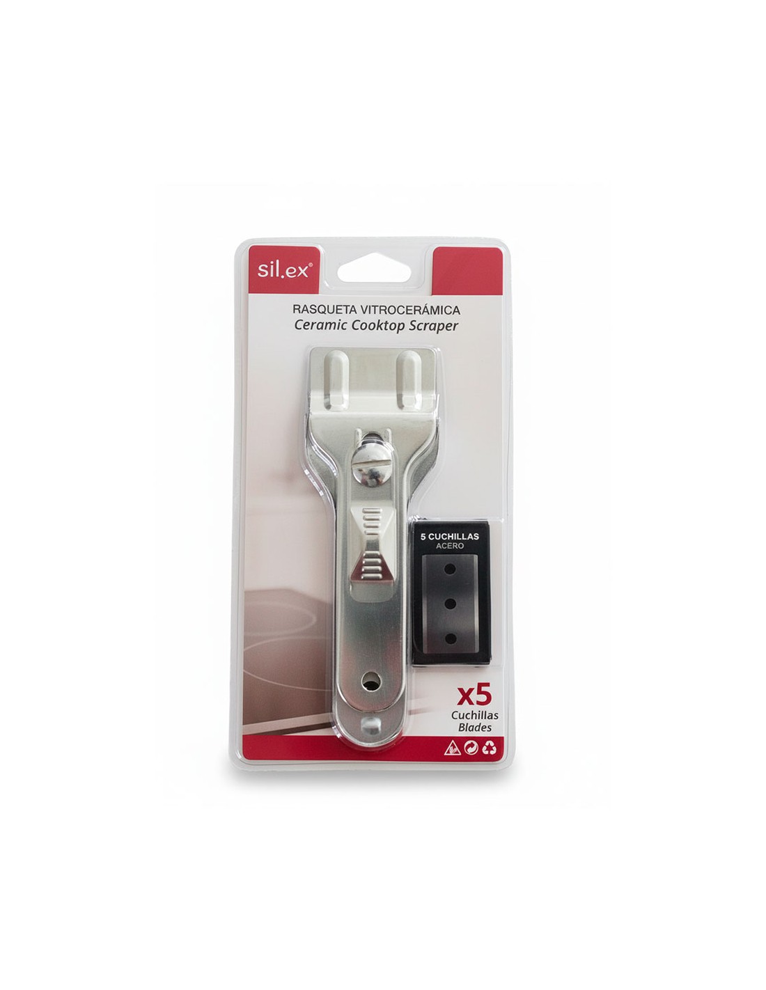 Rasqueta para vitrocerámica de chapa galvanizada, diseñada específicamente para raspar y eliminar restos de comida seca, derrames y residuos difíciles de la superficie de la placa de cocción, sin rayar el cristal. incluye 5 cuchillas de acero