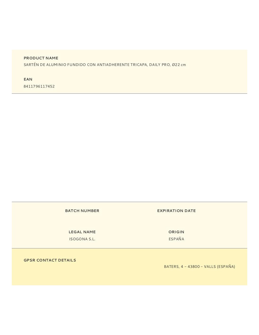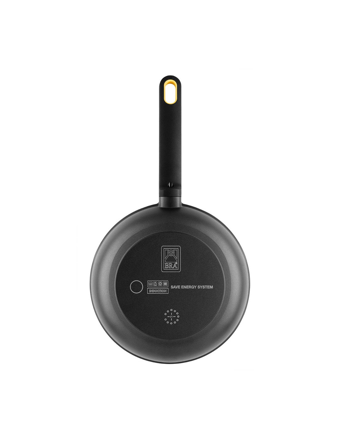 Sartén de aluminio fundido con antiadherente tricapa de gran calidad teflón innovation, libre de pfoa, apta para todas las fuentes de calor, fondo de gran espesor, mango negro de baquelita con insert de silicona en color amarillo para un agarre agradable y seguro, apta para lavavajillas, ø22 cm