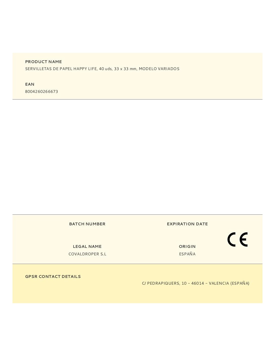 Servilletas de papel happy life, 40 uds, 33 x 33 cm, modelos variados