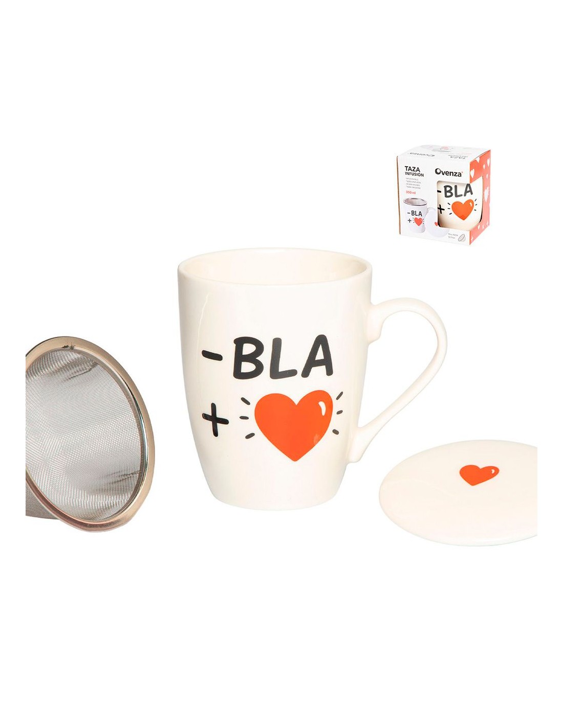 Taza infusión bla con filtro y tapa, de porcelana, dimensiones: ø85 x 125 x 105 mm / 350 ml