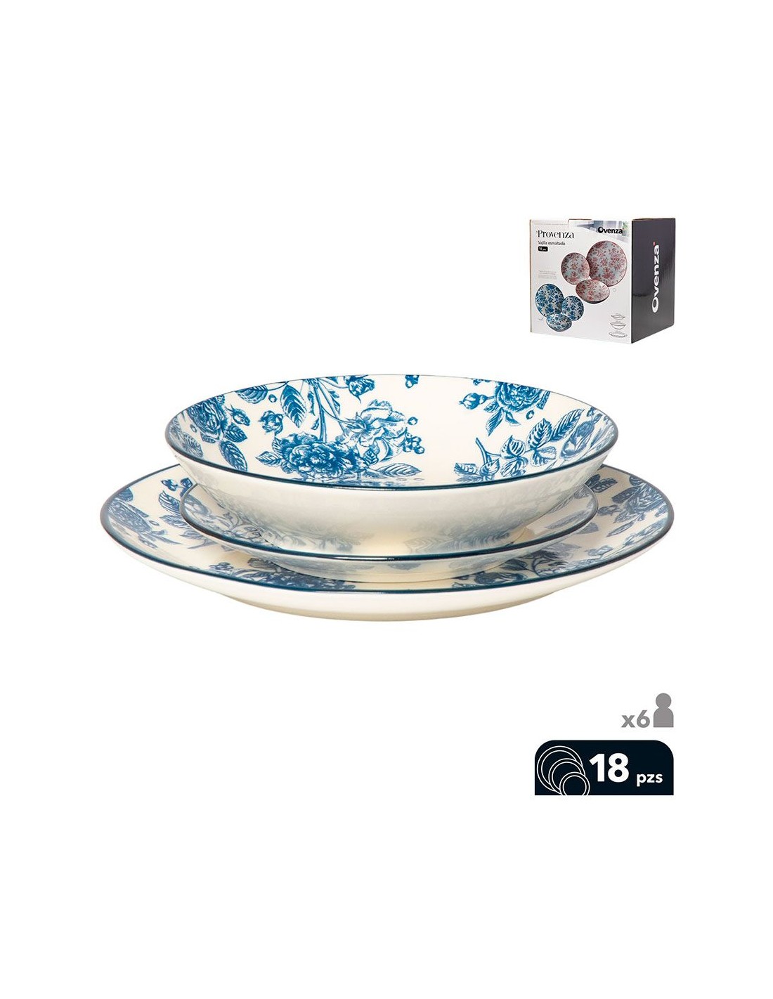 Vajilla esmaltada de 18 piezas, contiene: 6 x plato llano ø26 cm, 6 x plato hondo ø21 cm, 6 x plato postre ø19 cm modelo provenza, color azul apta para microondas y lavavajillas, no apta para horno