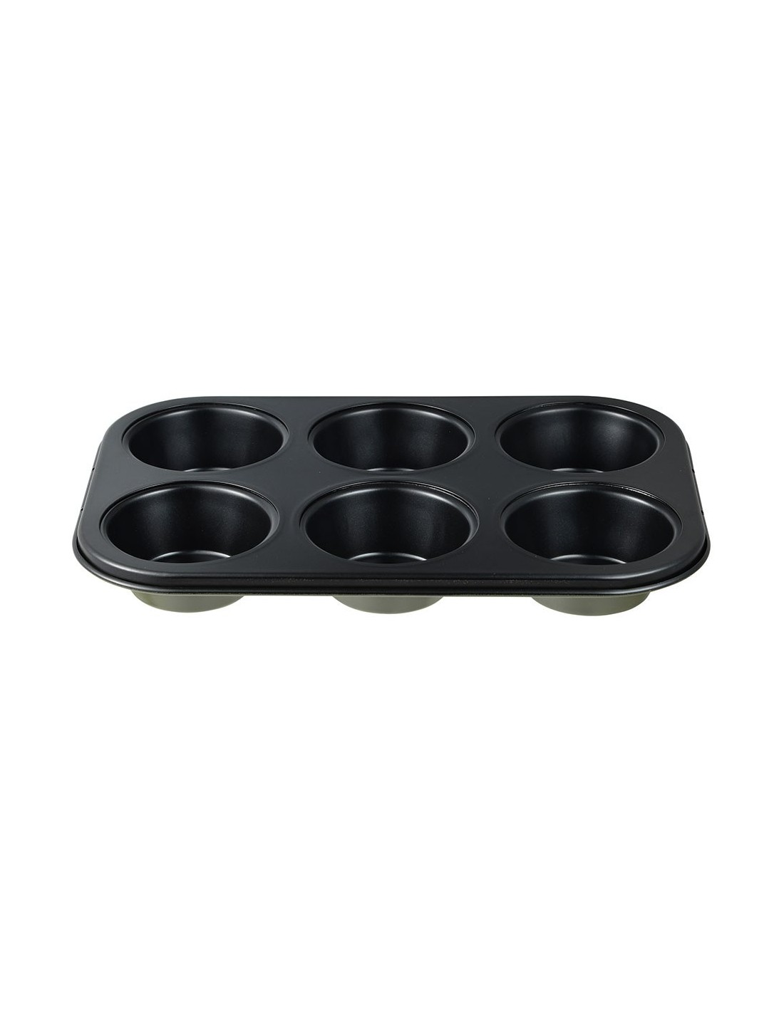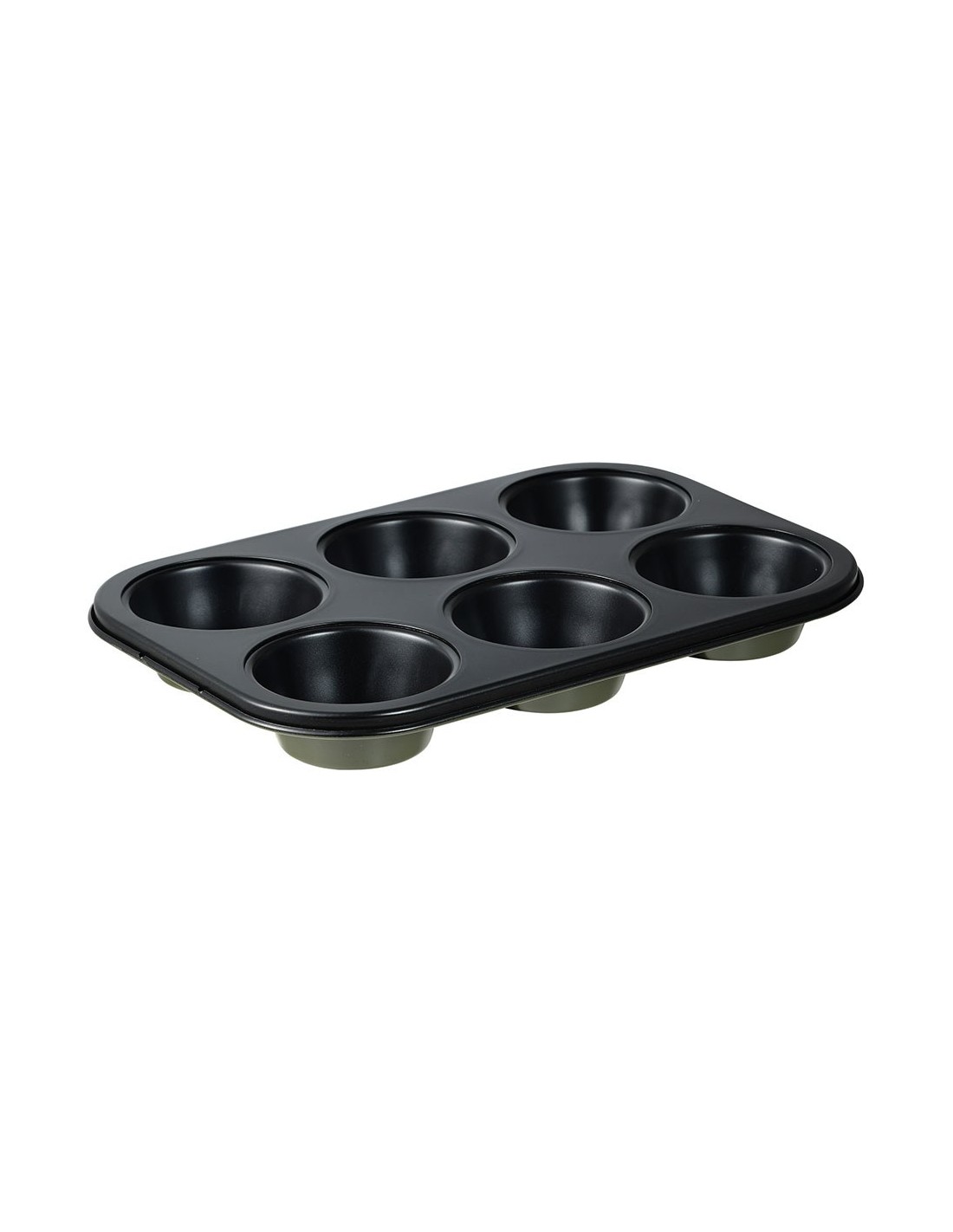 Molde para 6 muffins de acero al carbono, para horno, interior con recubrimiento antiadherente negro. exterior con recubrimiento de porcelana en pq-7764c, 26,5 x 18,5 x 3 cm
